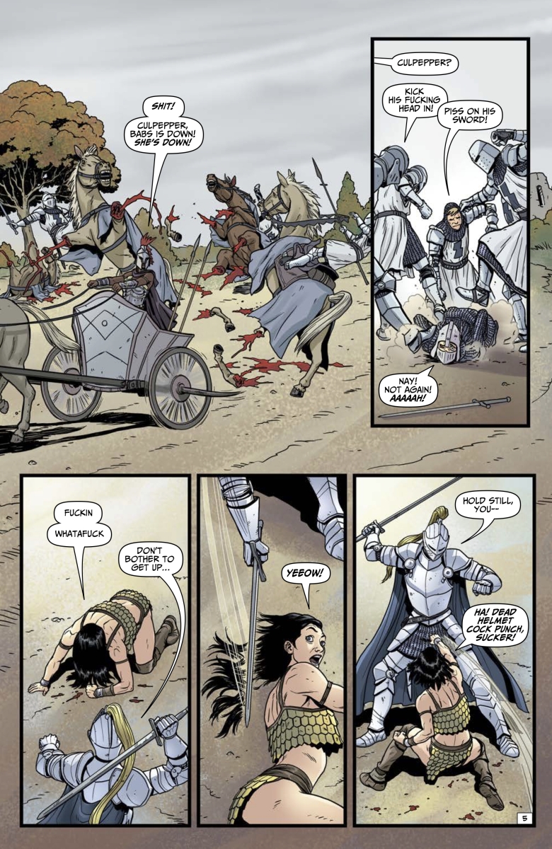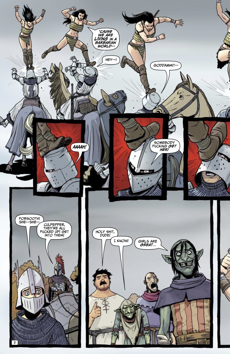 Fists! Swords! Blood and eyeballs! The hit series by Ennis (The Boys) and Burrows (Get Fury) concludes with Babs locked in final combat against Lord Tiberius and his horde of White Knights! Will somebody’s janky nasty bits play a decisive role in the ultimate battle? What do you think?