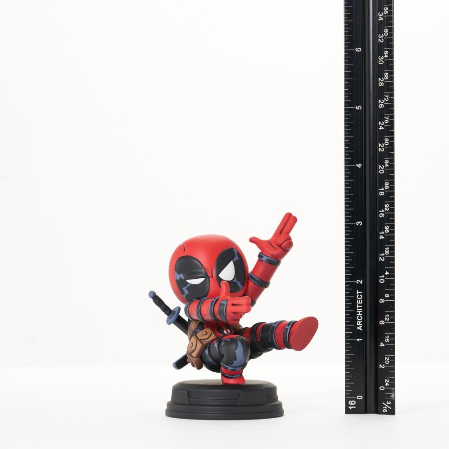 A Gentle Giant LTD release! Bang bang! Deadpool does a quick draw with double finger guns in this all-new animated-style statue from GG LTD! Based on the Young Marvel variant cover artwork of Marvel comics, this 3.25-inch resin statue features art-accurate sculpting and paint applications, and is limited to only 3,000 pieces. It comes packaged in a full-color box with a numbered certificate of authenticity. Sculpted by Casen Barnard! SRP: $59.99