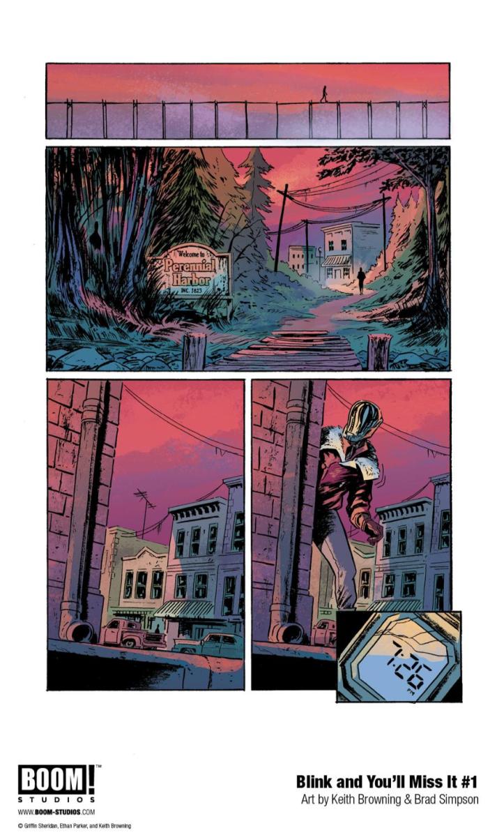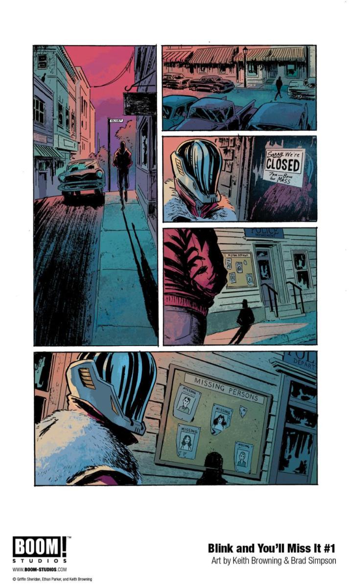 A mind-bending new mystery begins at BOOM! Studios from writers Ethan S. Parker and Griffin Sheridan (Kill Your Darlings), debut artist Keith Browning, and colorist Brad Simpson in BLINK AND YOU’LL MISS IT coming this Summer.