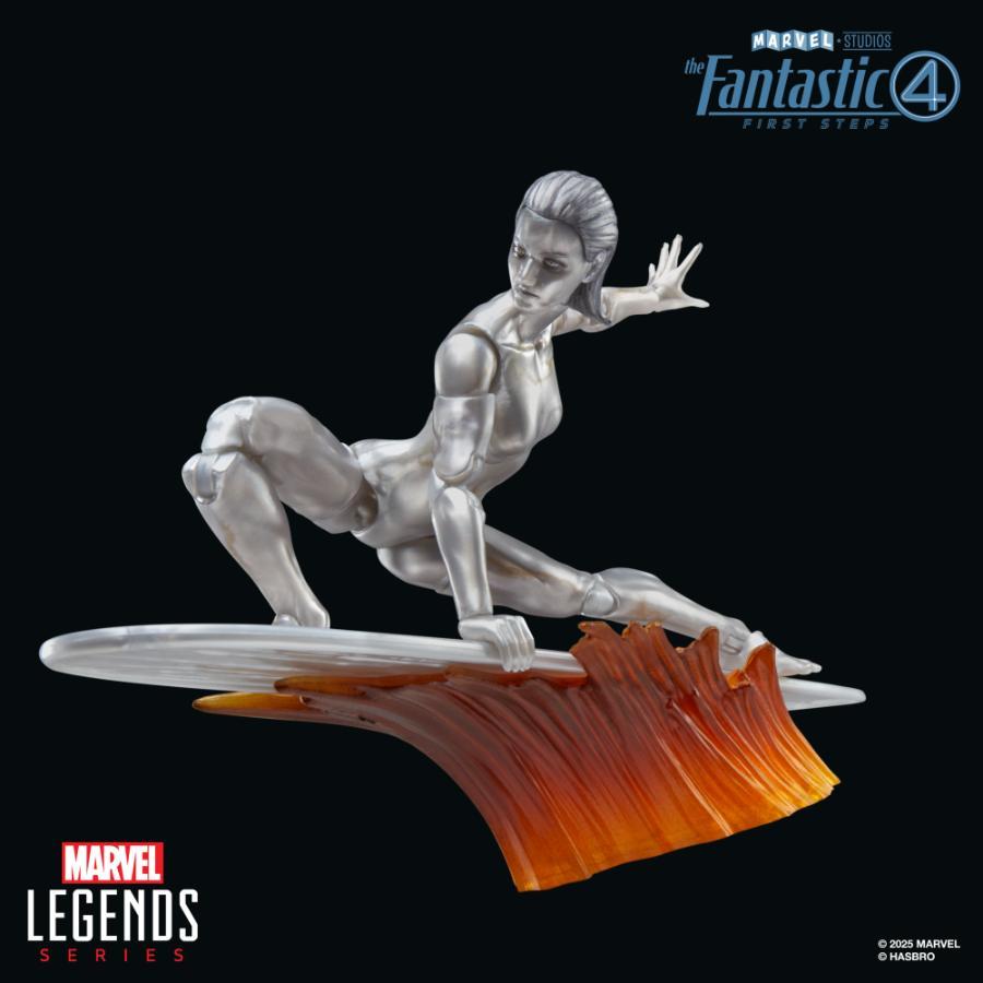 The Silver Surfer travels across the universe on her surfboard, searching for planets for Galactus to eat. Imbued with super-speed and strength, the Silver Surfer is an incredible threat to the Fantastic Four — and the universe. Bring the excitement and wonder of the Marvel Universe to your collection with the Hasbro Marvel Legends Silver Surfer action figure! This collectible 6-inch scale Marvel figure is detailed to look like the character’s appearance in THE FANTASTIC FOUR: FIRST STEPS. The metallic-colored Silver Surfer figure is fully articulated with premium design and poseable head, arms, and legs. This Marvel action figure set comes with 5 accessories, including alternate hands, and surfboard with stand for dynamic poses and display. Hasbro Marvel action figures’ 6-inch scale make them great for displaying in fans’ collections. Reimagine movie-inspired scenes on your shelf with Marvel Legends action figures, toys, and Marvel collectibles (each sold separately, subject to availability).