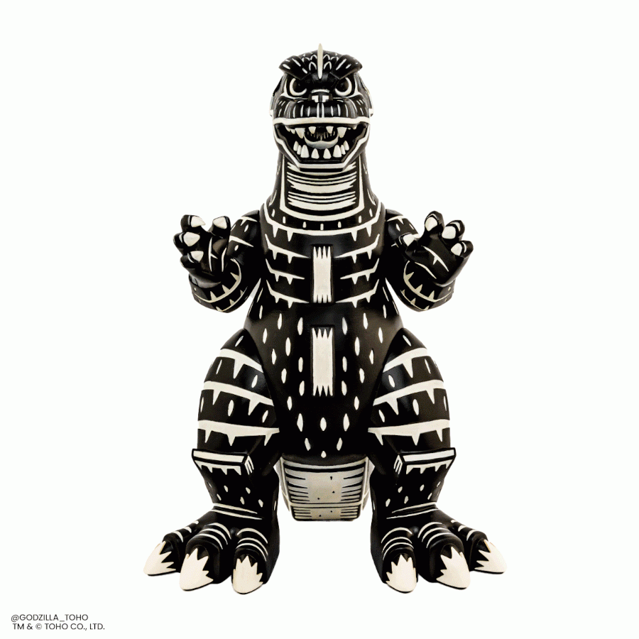 Godzilla – Vinyl Designer Figure by Attack Peter – Linocut Variant. Concept Design by Attack Peter. Sculpt by Tufan Sezer, Tommy Hodges. Paint by Hilary Arce. Packaging Art by Attack Peter. Packaging Design by Jordan Christianson. Photography by Robert Howell. Art Direction by Hector Arce & Peter Santa-Maria.
