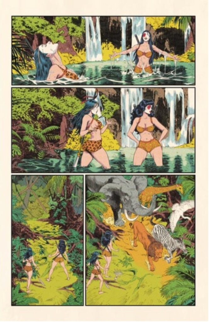 Starting in 1928, Shi: Gatecrasher takes the reader on an amazing adventure across comics’ incredible decades, trends, and genres. A funny book fantasy that sees Ana and Ran encountering war, westerns, horror, apes, nazis, space vixens, superheroes, romance, robots, dinosaurs, crime, and you guessed it, zombie bad girls!