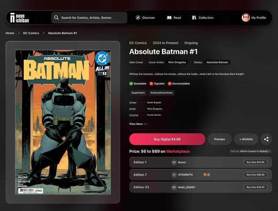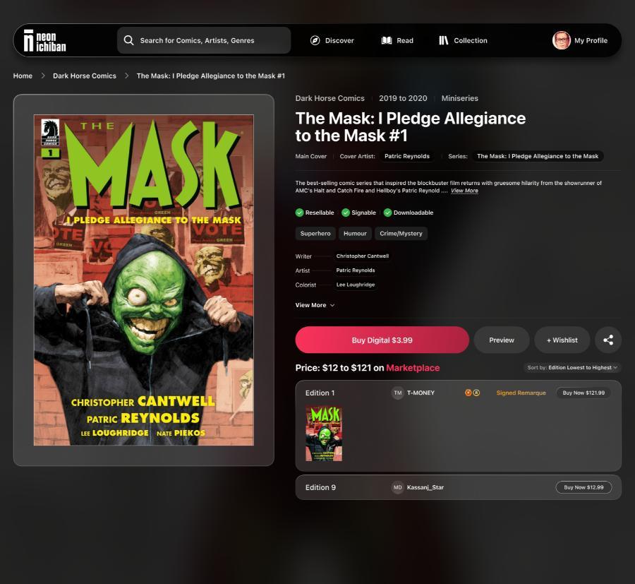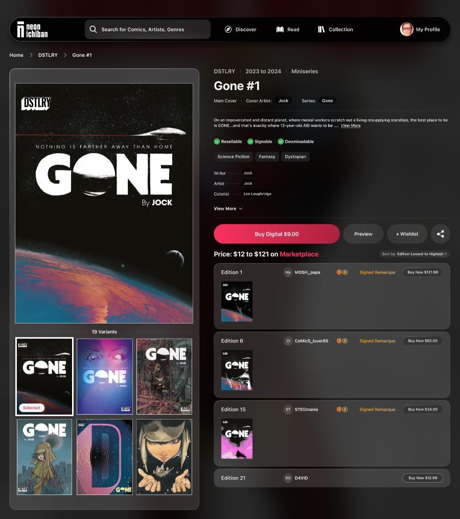 - All-In-One Digital Platform: NEON ICHIBAN serves readers and collectors simultaneously, offering same-day-as-print comics, manga, collections, and graphic novels. Single issues come in always-available standard editions alongside limited-edition variants and sketch covers for collecting.