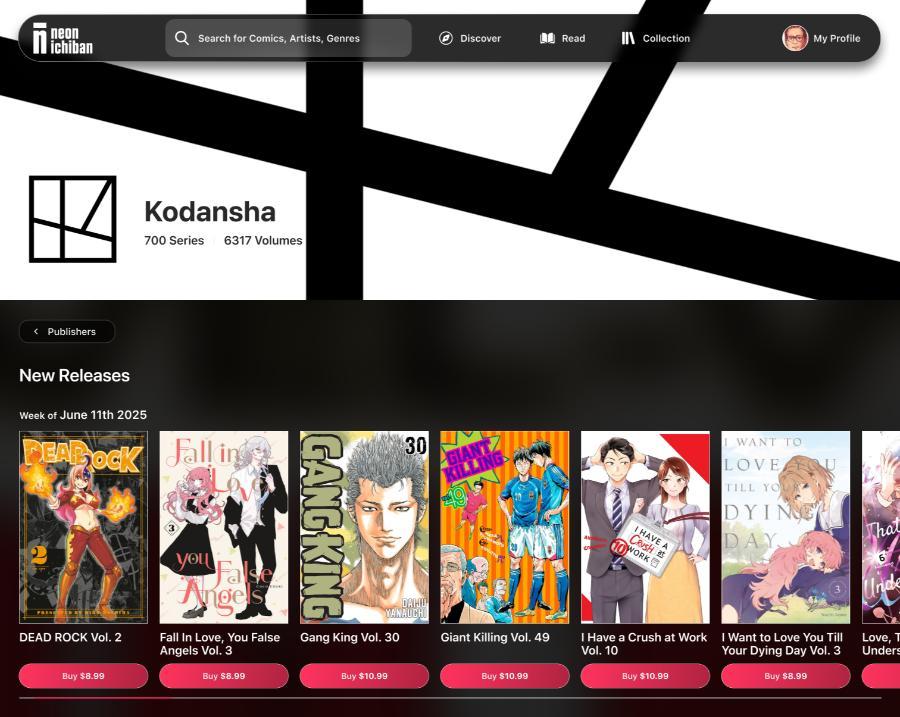 The launch will include new weekly frontlist releases, iconic comics and manga runs from publishing giants including DC and Marvel Comics. Marvel Comics and DC will showcase extensive digital catalogs alongside additional launch publishers including Dark Horse Comics, DSTLRY, Kodansha, Oni Press, and Vault Comics, establishing NEON ICHIBAN as a one-stop-shop for global fans’ digital comics and manga needs. More participating publishers will be announced at a later date.