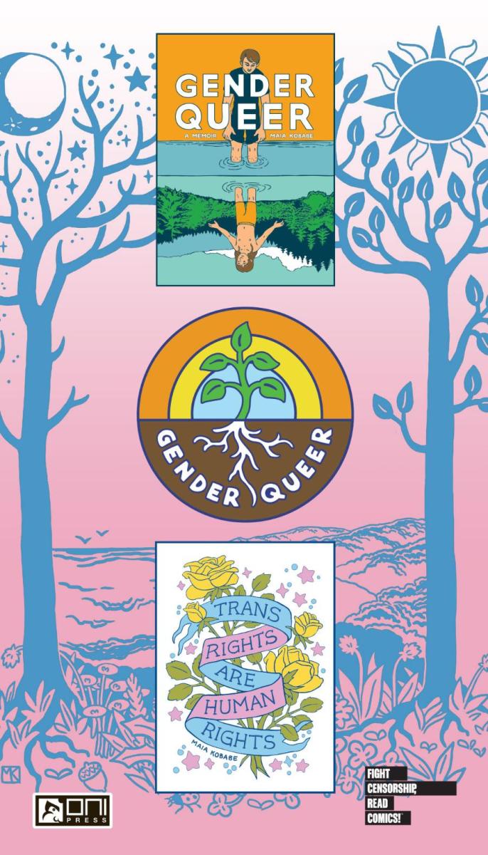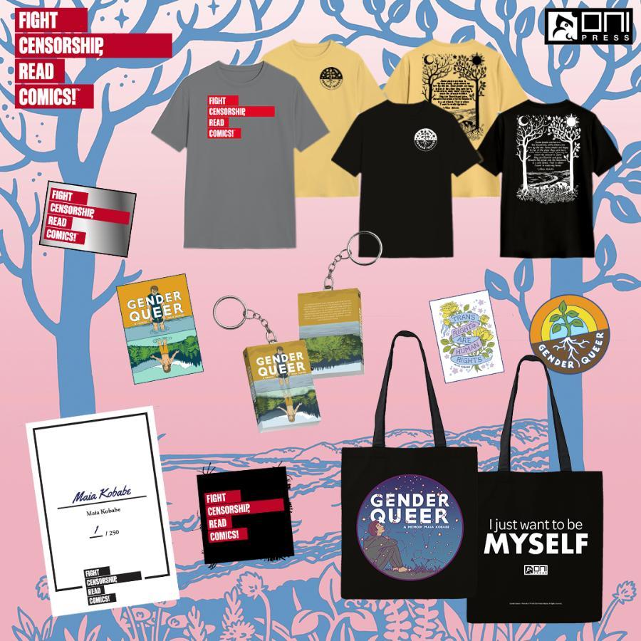 In advance of this summer’s American Library Association (ALA) Conference in Philadelphia, PA, Oni Press is proud to unveil its next Pre-Order Exclusive Merch Collection celebrating the best-selling graphic novel GENDER QUEER and the work of cartoonist Maia Kobabe as part of the publisher’s ongoing FIGHT CENSORSHIP, READ COMICS initiative.