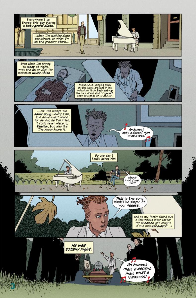 Prince added: “It’s an absolute privilege to spin yarns about Rick the Ice Cream Man, his jingly-jangly truck, and, most importantly, everyday people fighting their way through the morass of adult life: grief, regret, addiction, divorce, overdue bills, sick family, sick self, the fall of democracy…it’s never-ending, that list. But I can still see that sliver of light breaking through…We somehow managed to make a ‘horror’ book that is, in fact, about human suffering, with slivers of light and hope streaked through the center of everything. Plus, we’ve gotten to perform some very wild comic-specific formal experiments: a silent, three-reality, and three-color issue; a story that’s an actual palindrome; a crossword puzzle; an instruction manual; a dark recreation of beloved children’s books; an advent calendar; a telethon; an issue that is one continuous image when read in landscape orientation.”
