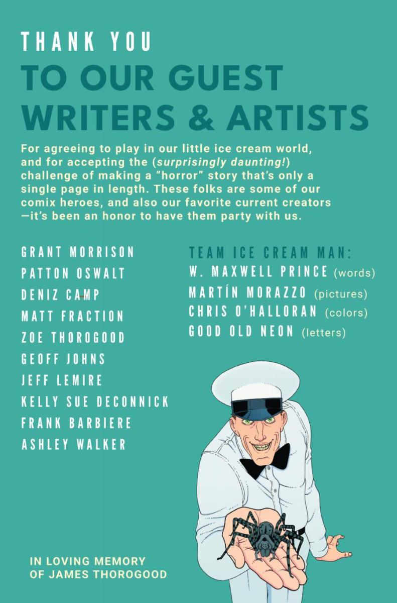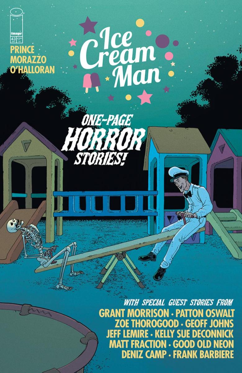 “THANK YOU to everyone who has stuck with us for so long,” added Prince. “We’ve still got a lot of surprises in store for issues #44 and beyond, including the Ice Cream Man, Vol. 11 trade paperback! Eleven volumes to sadden your shelves, stack high as a doorstop, or if you’re in the mood, read entirely in one sitting. And this is to say nothing of our Ice Cream Man movie in development over at horror central, Sony Screen Gems, headed by Wednesday and Smallville creators Alfred Gough and Miles Millar, alongside our amazing producer Aaron Schmidt. Feel free to start your dreamcasting for Ice Cream Man RIGHT NOW.”