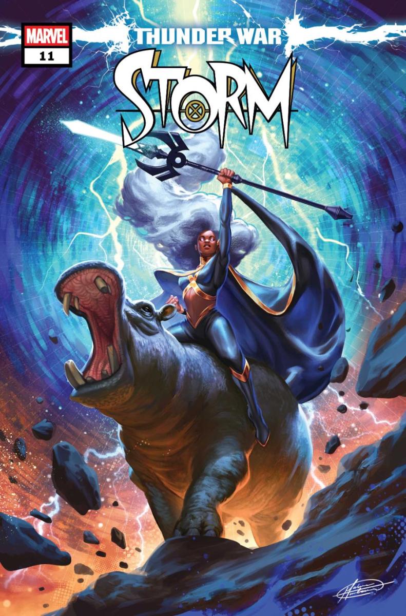 It’s the youngest storm god versus the oldest as STORM battles HADAD! Leaving Galactus, Silver Surfer and even Eternity in his wake, HADAD, the first and most powerful thunder god who debuted last week in STORM #9, is set to consume the universe! The only hero capable of stopping him is STORM, and to do so, she’ll need to soar higher than ever before. Will the iconic X-Man secure her place amongst the cosmic pantheon or be brutally brought down to Earth? A culmination of Storm’s milestone anniversary year, don’t miss this critical chapter in the iconic X-Man’s storied history.