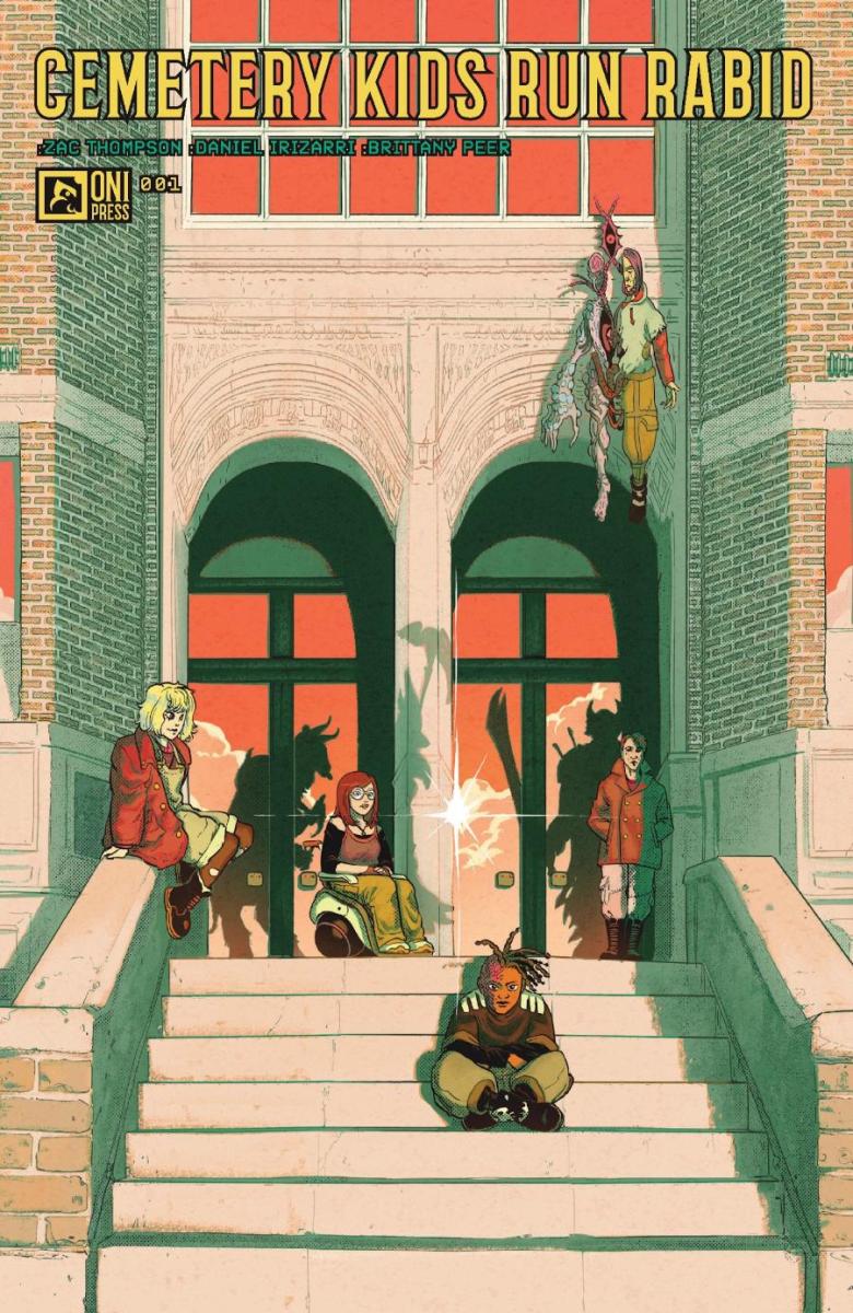 BEING ONLINE PUTS YOUR LIFE ON THE LINE!– Oni Press, the multiple Eisner and Harvey Award-winning publisher of groundbreaking comics and graphic novels since 1997, is proud to present the first look inside CEMETERY KIDS RUN RABID #1 – an all-new jumping point for the serotonin-splattered video game horror hit from Zac Thompson (Into the Unbeing – Parts 1 & 2) and Daniel Irizarri (EC’s Cruel Universe, Judge Dredd) that began with CEMETERY KIDS DON’T DIE! On August 13th, sit back, relax, and surrender your mortal consciousness to the CPU of the Dreamwave – the world’s first video game system played exclusively in your sleep – even though its players sometimes don’t wake up…