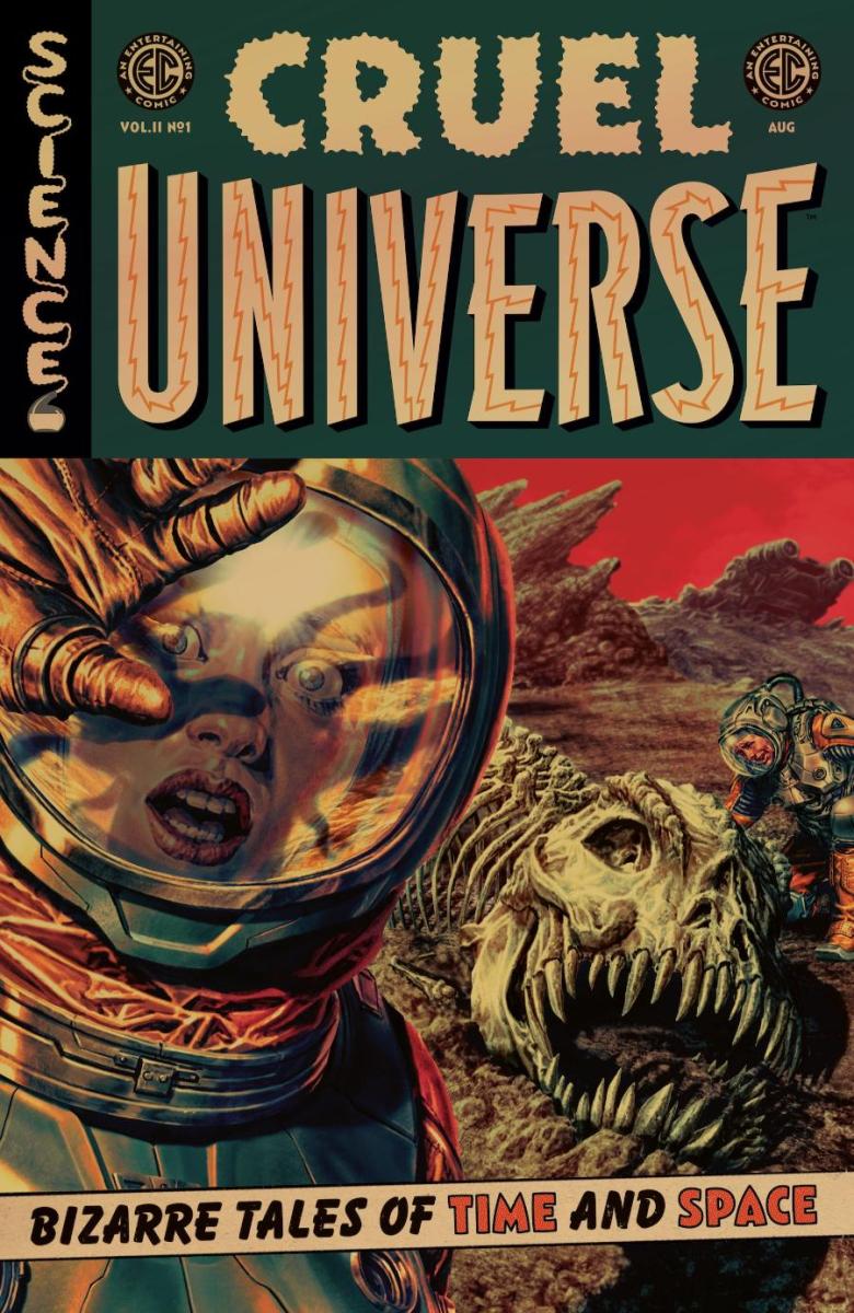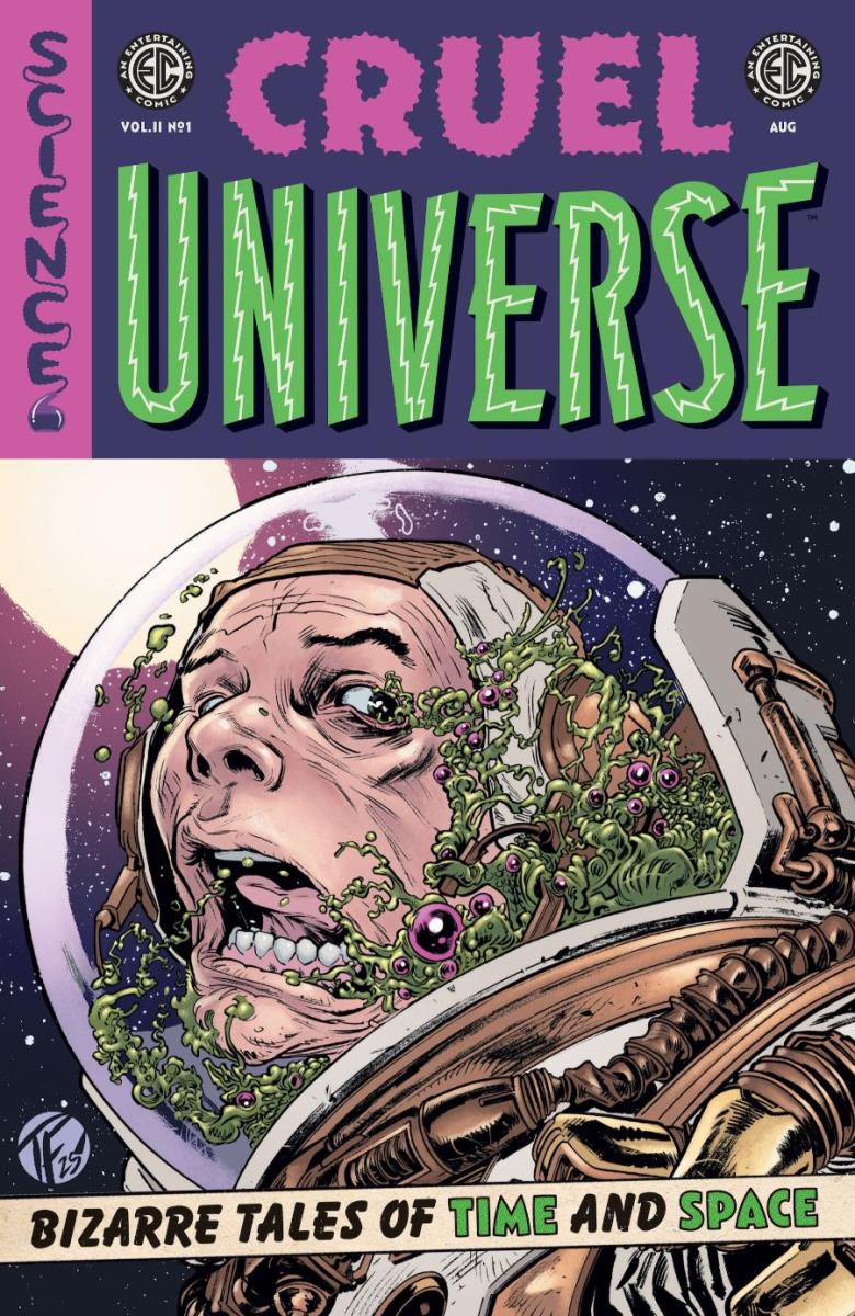 ALAS, THE CRUSHING WEIGHT OF GRAVITY ONLY PULLS ONE WAY: DOWN! ! Oni Press, the multiple Eisner and Harvey Award-winning publisher of groundbreaking comics and graphic novels since 1997, and William M. Gaines Agent, Inc. are proud to deliver your first look inside CRUEL UNIVERSE 2 #1 – crashlanding in comic shops across the galaxy on August 6th from an all-star cast of comics’ most depraved scientific minds as EC Comics’ best-selling, Eisner Award-nominated ode to cosmic annihilation returns with an powerful new 12-issue maxi-series … and a colossally oversized, 40-page first issue!