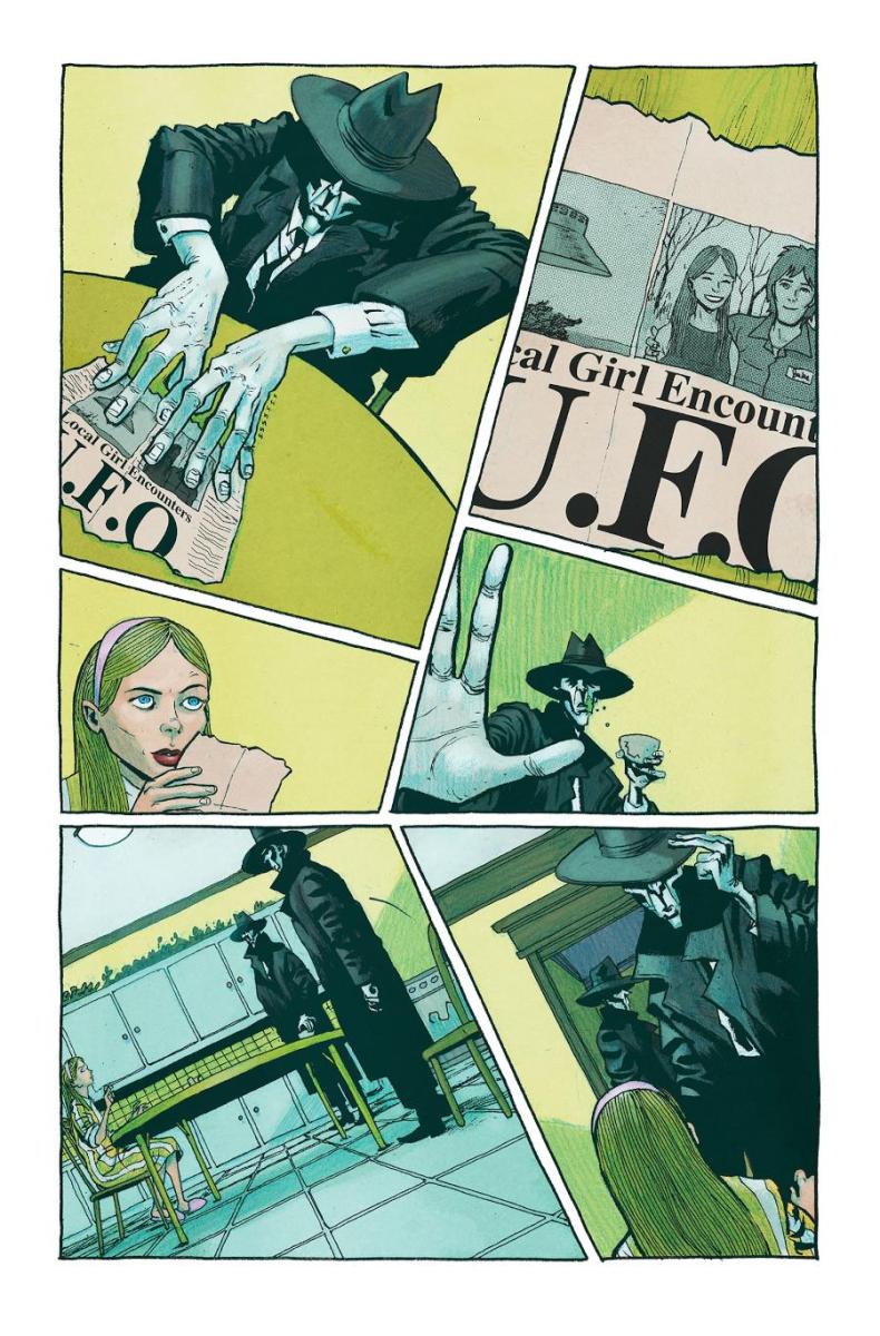 In the first double-sized, 40-page chapter debuting this October: Noah joins co-writer Chris Condon and artist Dave Chisholm for an unexpected encounter with the enigmatic Men in Black in 1967 as magazine writer Harry Kean is dispatched to rural Indiana to investigate the sudden disappearance of Becky Plume, a local teenager who stepped into the national spotlight with staggering photographic evidence of a recent UFO sighting. Frustrated to leave his developing stories in Chicago—and the wife he’s hoping to win back—Harry sets off to expose a hoax but instead finds himself in a labyrinth of high strangeness involving a missing girl, her boyfriend, a UFO, and some mysterious black-clad visitors circling at the perimeter of a mystery more vast than Harry could possibly imagine.