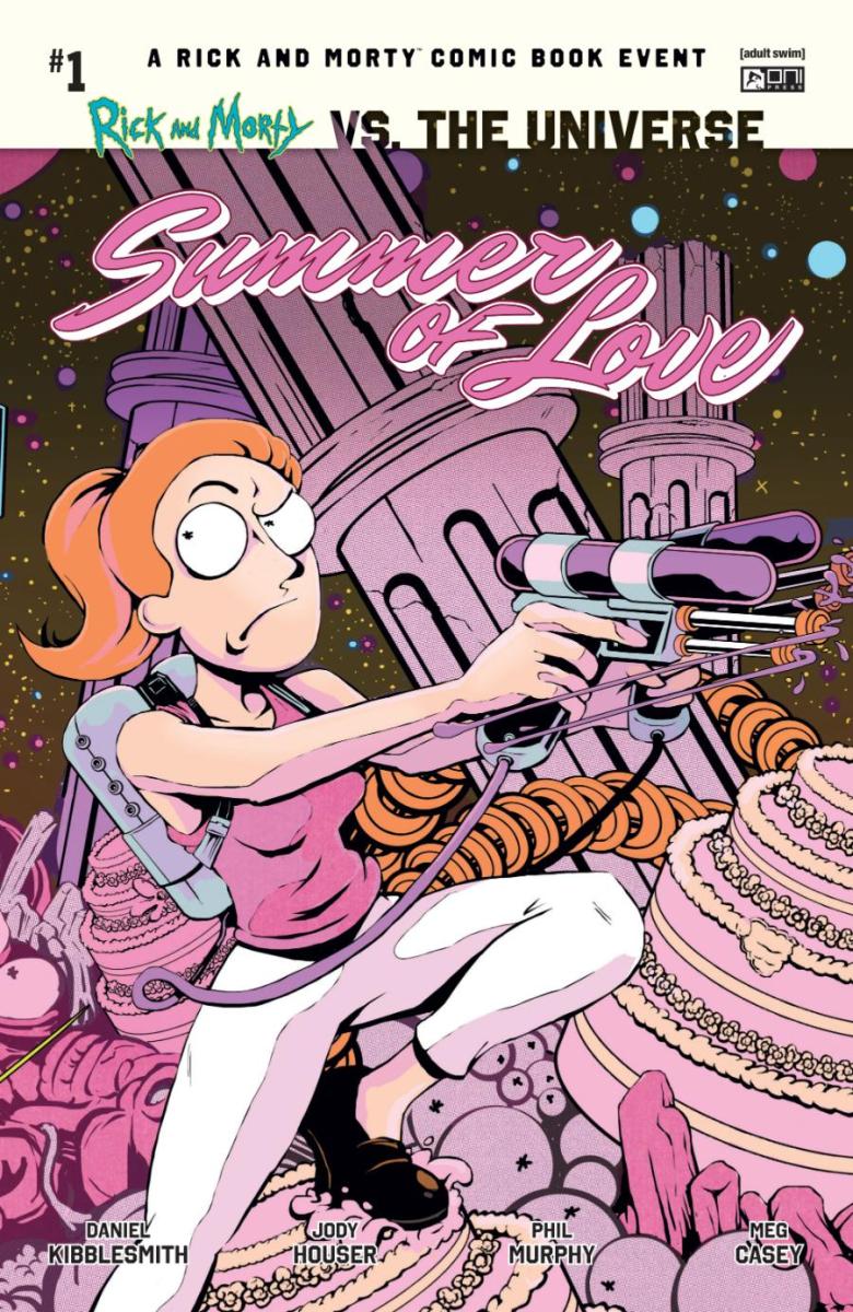Tying directly into the events of RICK AND MORTY VS. THE UNIVERSE – the FIRST-EVER Rick and Morty comic book event from cosmos-colliding creators Daniel Kibblesmith (Loki) and Jarrett Williams (Speed Force) – RICK AND MORTY VS. THE UNIVERSE: SUMMER OF LOVE #1 is the first of the three TOP SECRET TIE-IN SPECIALS co-piloted by Kibblesmith and a stunning array of surprise guest talents. Ten years of acclaimed RICK AND MORTY comics at Oni Press have all led to this: the ultimate, dimension-smashing jumping-on point for fans old, new and in-between! Beginning on July 9th in RICK AND MORTY VS. THE UNIVERSE #1, follow the epic fallout across the seven stunning chapters: