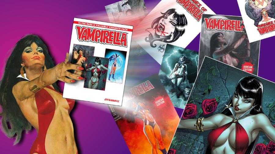 Priced at $100 each, these mystery bags are packed with six comics guaranteed to have a minimum value of $250, and they could exceed upwards of $500 with rare variants, premiums, ashcans, trading cards, and more. With items pulled from across the landscape of Vampirella’s publishing history at Dynamite to celebrate her 55-plus years of history, there’s something incredible for every bag and fan.
