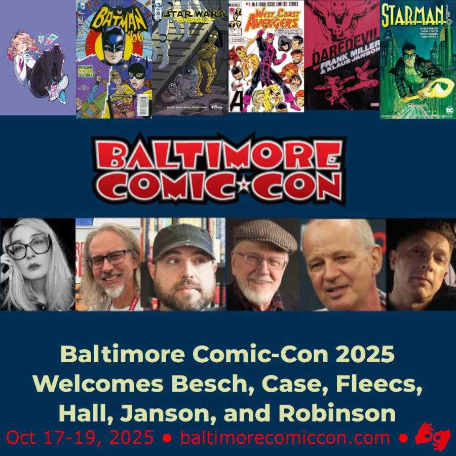 In the coming weeks, look for more announcements from the Baltimore Comic-Con. We are looking forward to highlighting our guests, the Ringo Awards, programming, and more. The latest developments can always be found on our website, Twitter, Instagram, and Facebook pages, and follow us on YouTube, TikTok, Bluesky, and Snapchat.