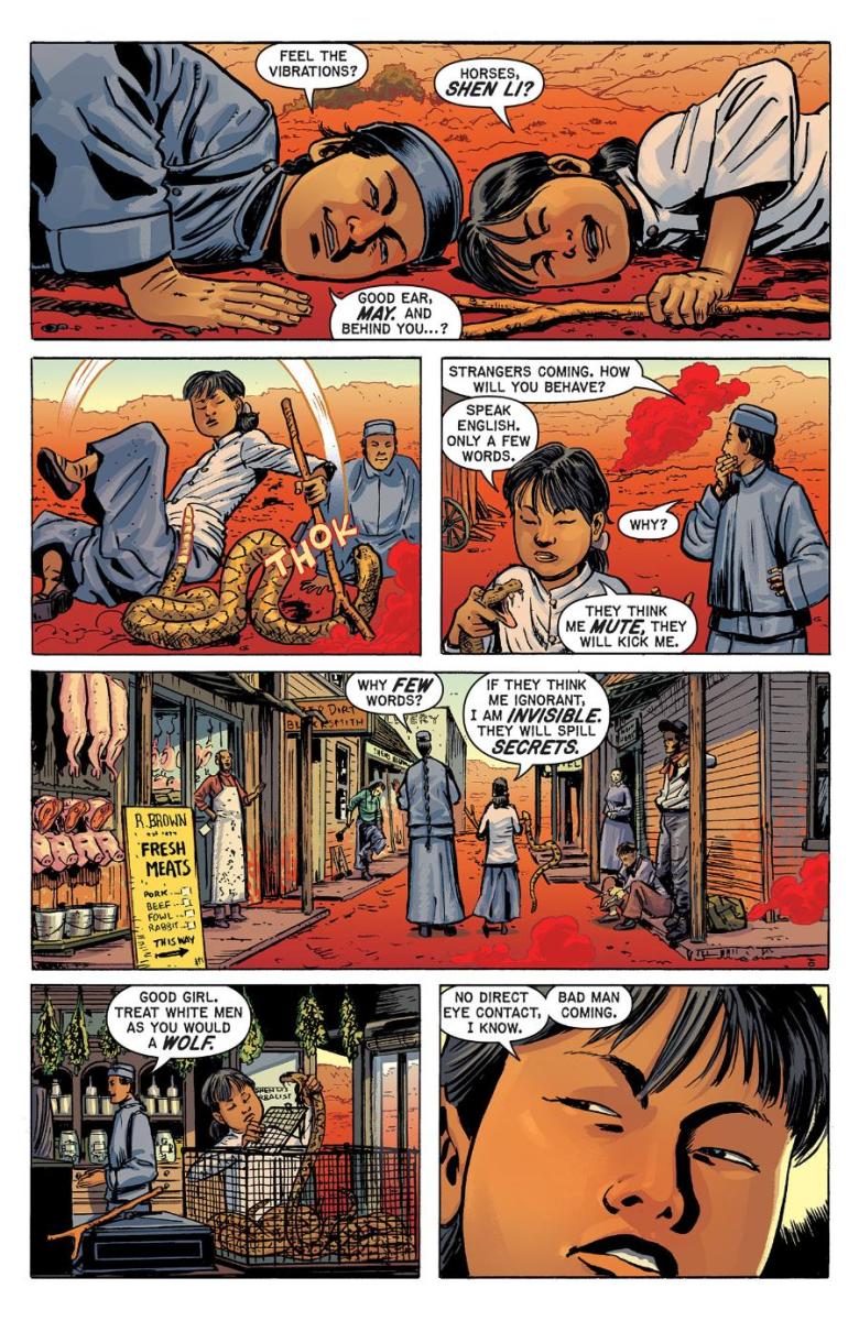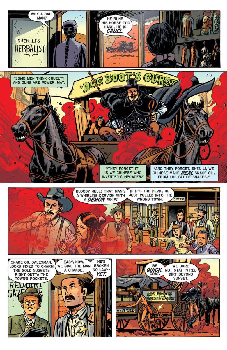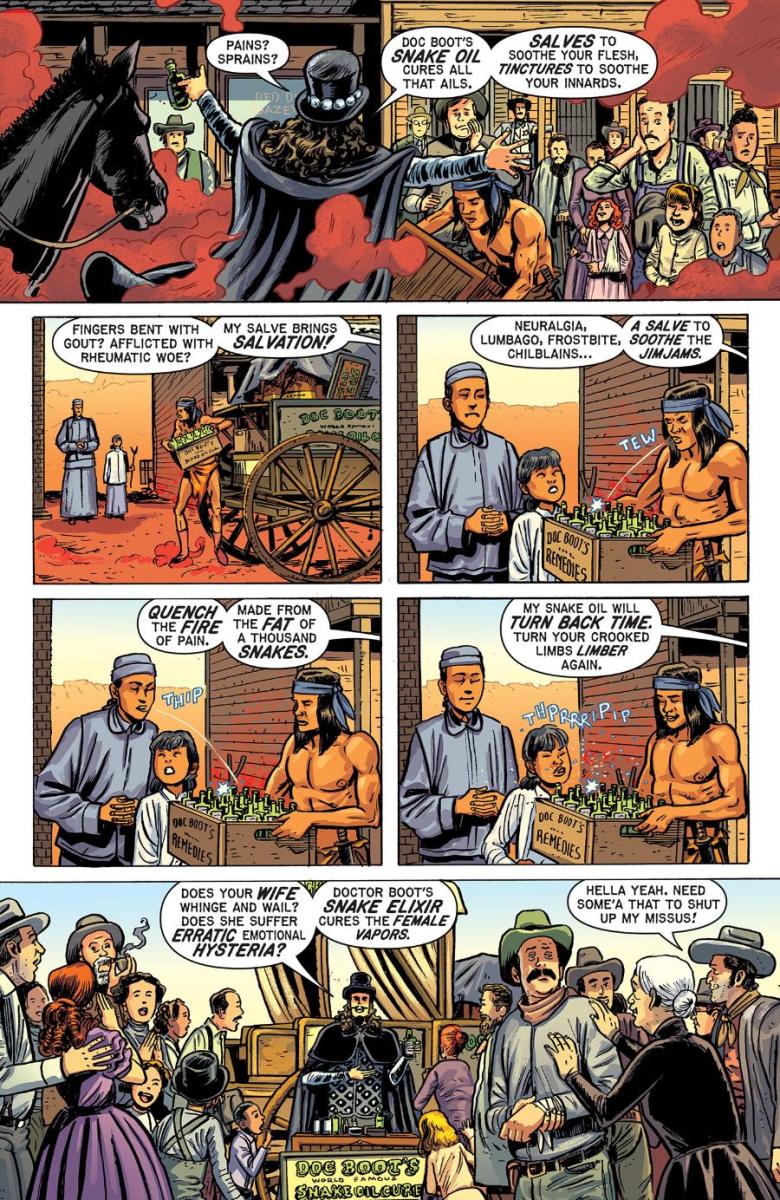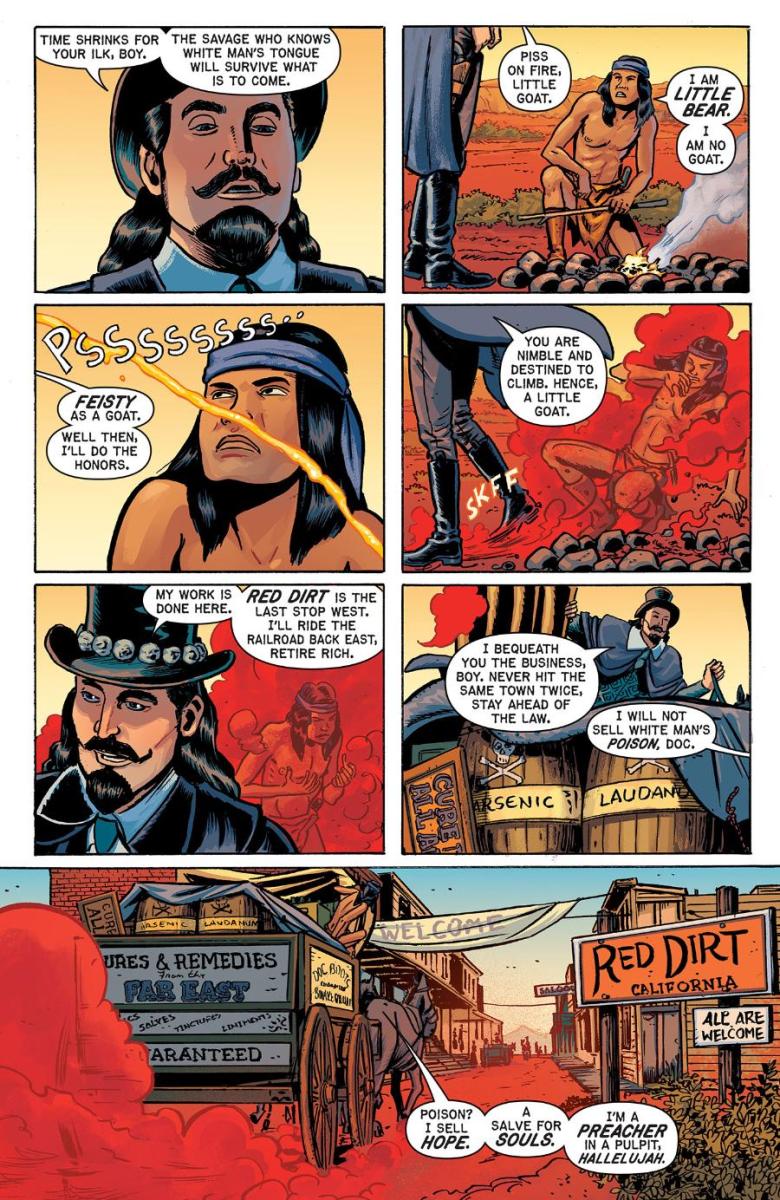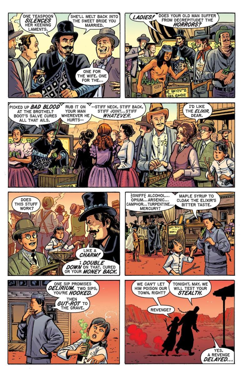 Here, for the first time, Oni Press and EC Comics can reveal a peek through the saloon doors to what awaits inside OUTLAW SHOWDOWN #1 with a sly gander at two surefire-hit stories: “Fire in the Hole” by Eisner Award nominee Tony Moore and “The Cure” by comic legends Ann Nocenti & David Lapham.