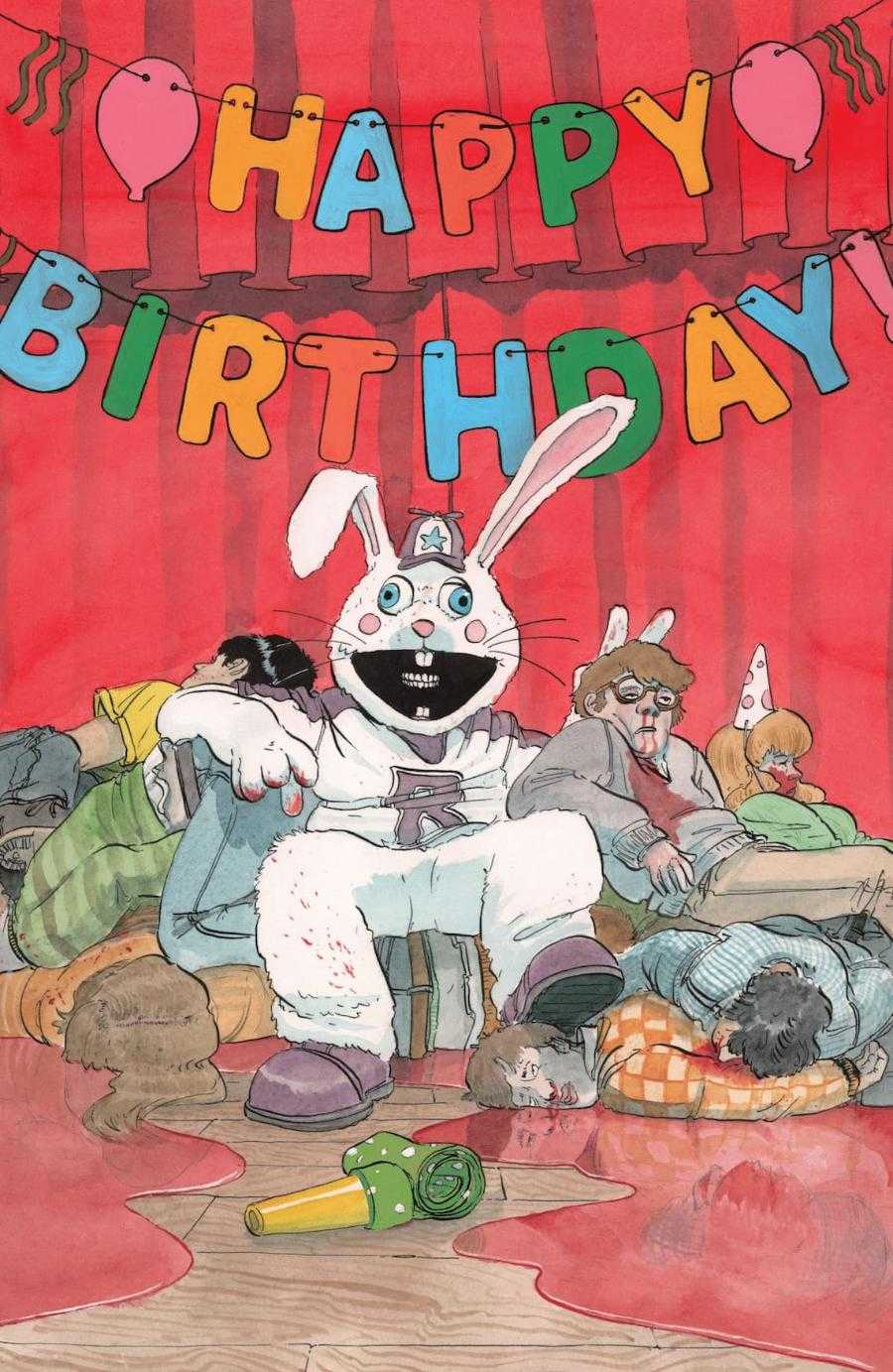 Horvath’s variant cover, featuring killer Rascal Randy gone wild at a birthday party, will hit shelves in October, just ahead of Halloween