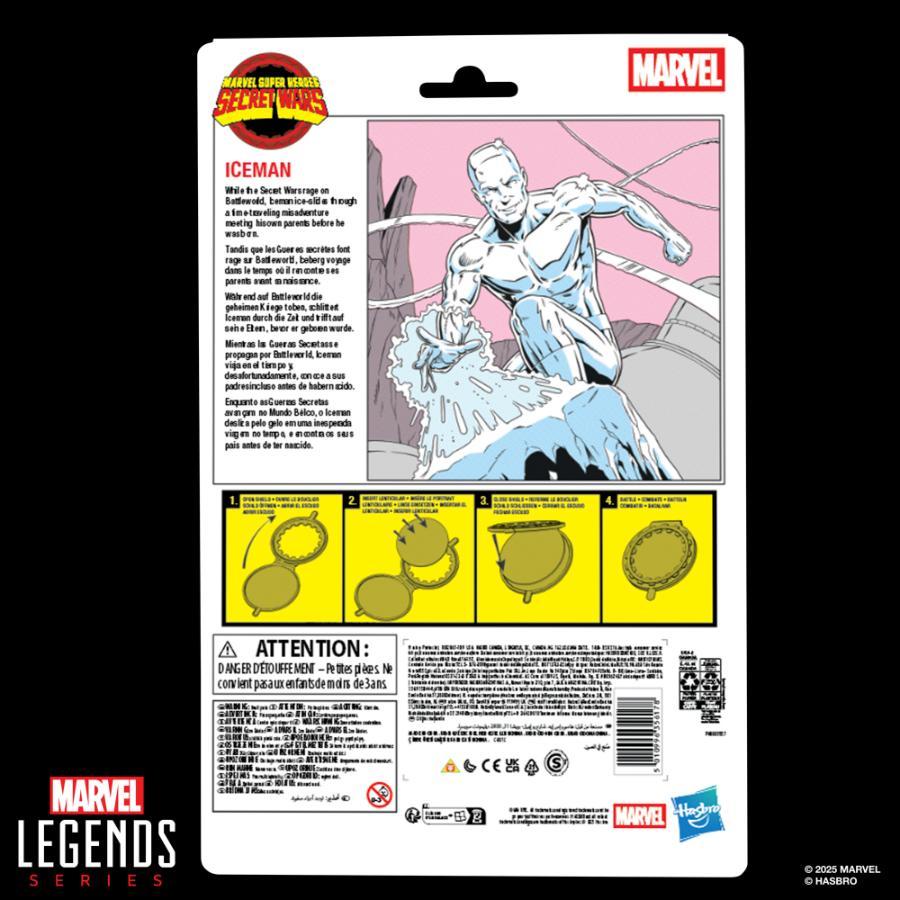 While the Secret Wars rage on Battleworld, Iceman ice-slides through a time-traveling misadventure meeting his own parents before he was born. With over 80 years of entertainment history, Marvel has become a cornerstone of fan collections around the world. With Marvel Legends, fan favorite Marvel Comic Universe and Marvel Cinematic Universe characters are designed with premium detail and articulation for posing and display. This officially licensed Marvel figure is inspired by the Ice Man figure from the epic 1980s Secret Wars toy line. Marvel fans and collectors can display this 6-inch action figure with comics-inspired design and deco in their action figure collections. Includes an alternate head, alternate hands, 2 ice blasts, an ice slide, and a snowball — plus a “secret” shield based on the original figure release. Features collectible cardback packaging with retro-inspired design and comic character art celebrating the original Secret Wars toy line. Bring the excitement and wonder of the Marvel Universe to your collection with Marvel Legends Ice Man and other collectible Marvel action figures (each sold separately, subject to availability).