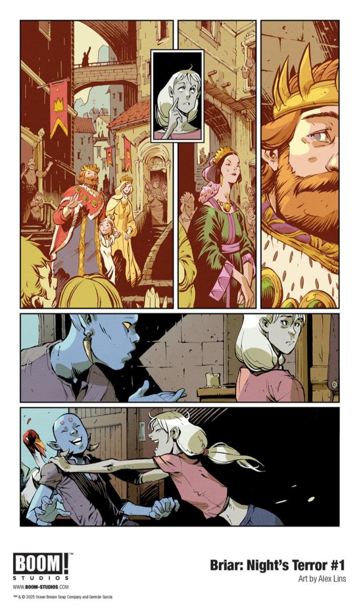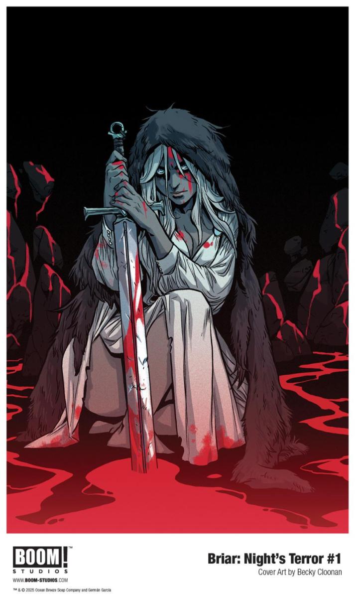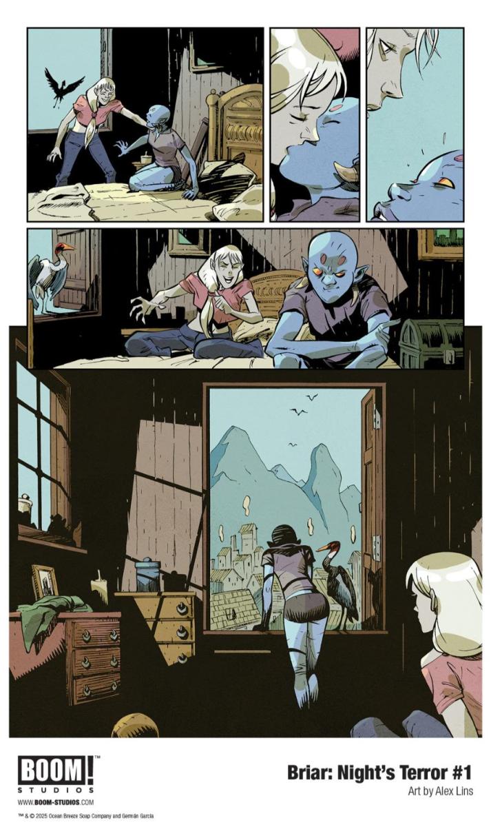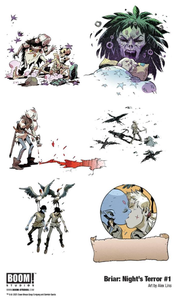 BRIAR: NIGHT’S TERROR #1 is the newest release from BOOM! Studios’ eponymous imprint, home to critically acclaimed original series, including BRZRKR by Keanu Reeves, Matt Kindt, and Ron Garney; Something is Killing the Children by James Tynion IV and Werther Dell’Edera; bestselling horror anthology Hello Darkness; Grim by Stephanie Phillips and Flaviano; Stuff of Nightmares by R.L. Stine and A.L. Kaplan; A Vicious Circle by Mattson Tomlin and Lee Bermejo; Ghostlore by Cullen Bunn and Leomacs; Rare Flavours by Ram V and Filipe Andrade; Underheist by David and Maria Lapham; Animal Pound by Tom King and Peter Gross; Minor Arcana byJeff Lemire; Vicarious by Ryan Parrott and Eleonora Carlini; The Creeping Below by Brian Azzarello and Vanesa Del Rey; Bronze Faces by Shobo, Shof, and Alexandre Tefenkgi; In Bloom by Michael W. Conrad and John J. Pearson; and When I Lay My Vengeance Upon Thee by Gus Moreno and Jakub Rebelka. The imprint also publishes popular licensed properties, including Dune: House Corrino from Brian Herbert, Kevin J. Anderson, and Simone Ragazzoni; Power Rangers Prime by Melissa Flores and Michael YG; and The Expanse: A Little by Andy Diggle, Wes Chatham, and Francesco Pisa.