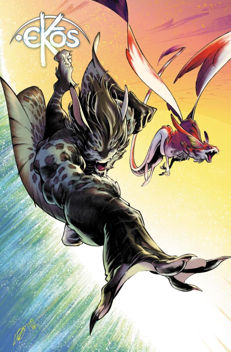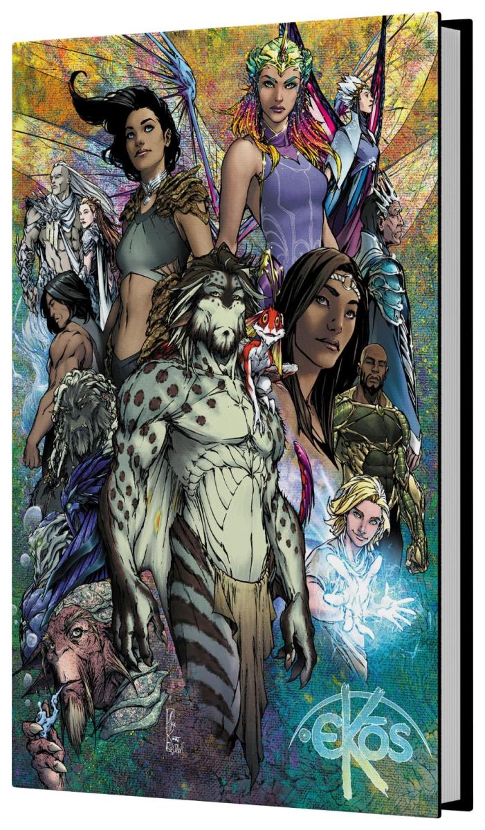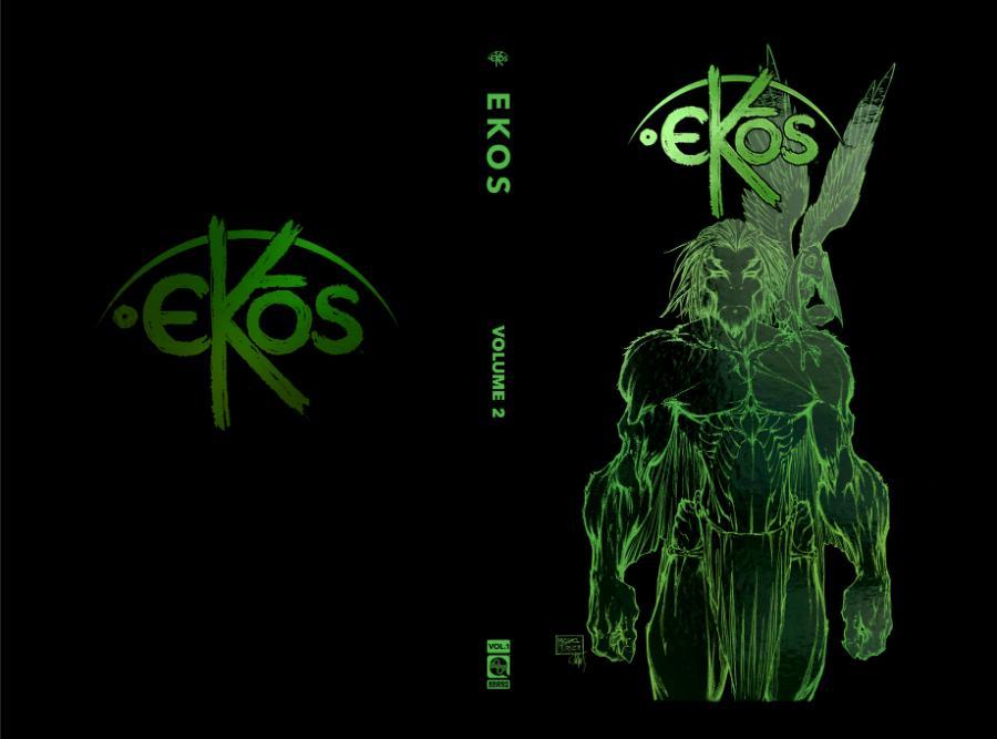 - Ekos Volume 2 Hardcover with Exclusive Dust Jacket – Oversized 8” x 12” Hardcover book collects Ekos Volume 2 issues #1–4, with a campaign exclusive dust jacket by series artist Alex Konat – $50