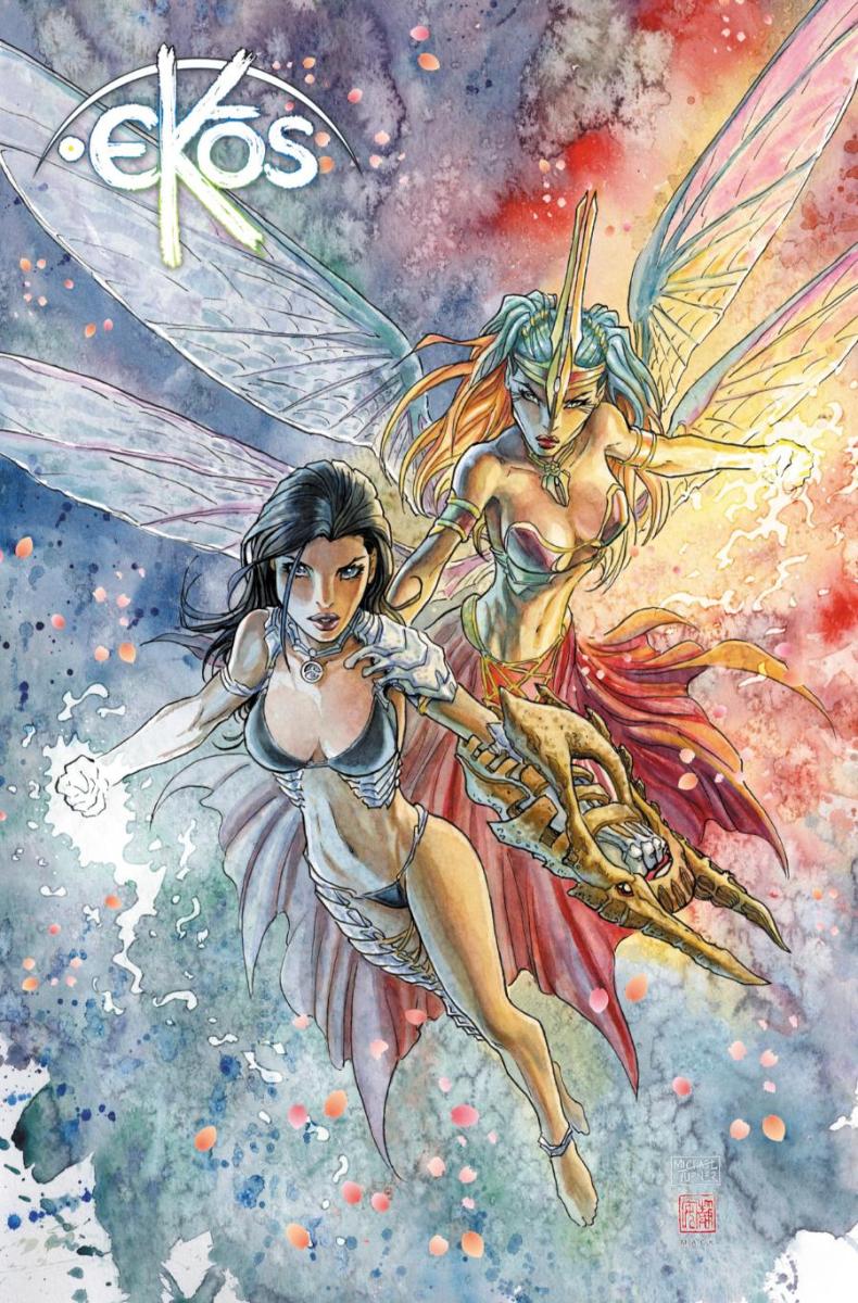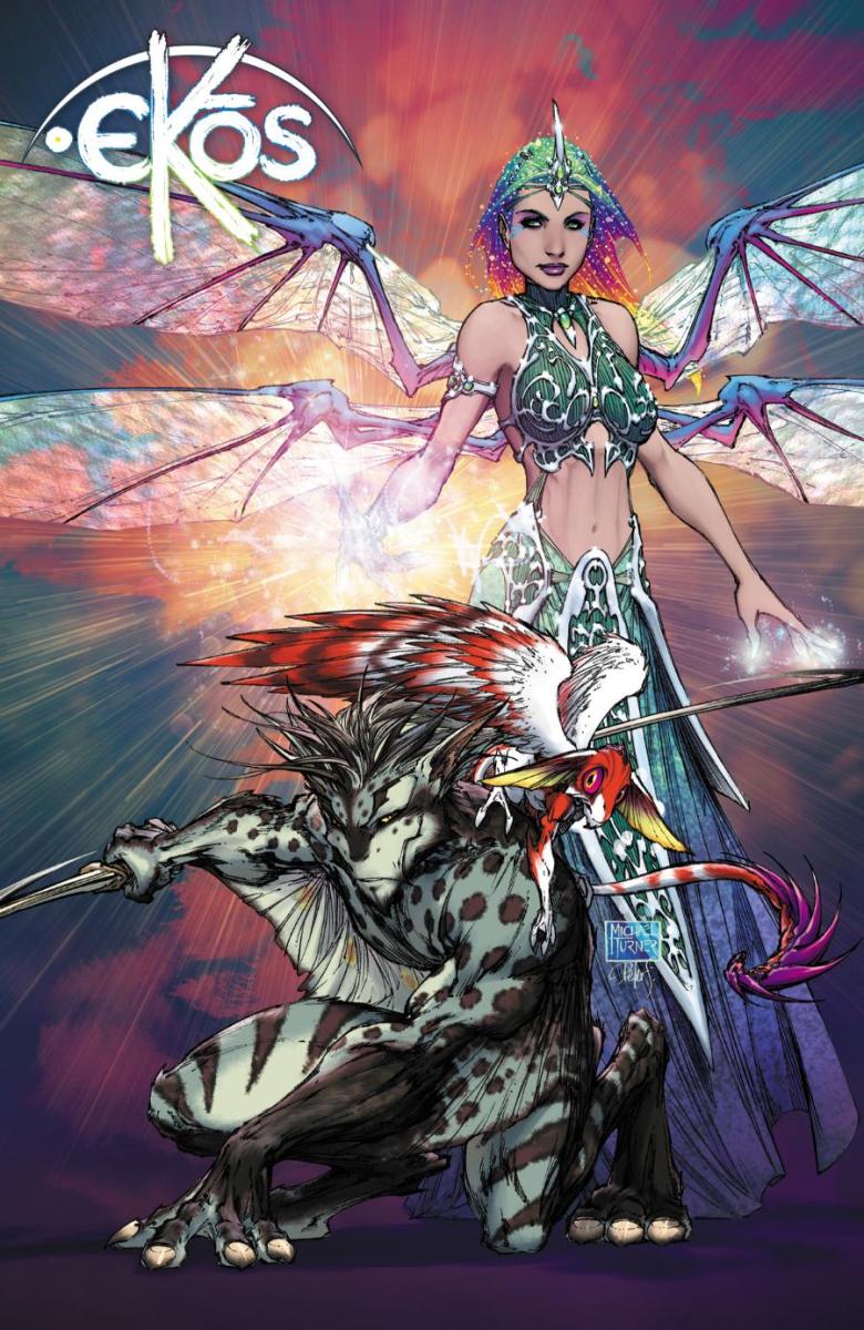 Ekos Volume 2, the second graphic novel in a brand new comic and entertainment universe inspired by the art and creations of legends Michael Turner & Geoff Johns and produced by Marvel Studios Founder David Maisel & Aspen Comics, is live now on Kickstarter! Anyone who backs the project in the first 72 hours of launch will receive limited bonus items including a special art print and a collector’s pin.
