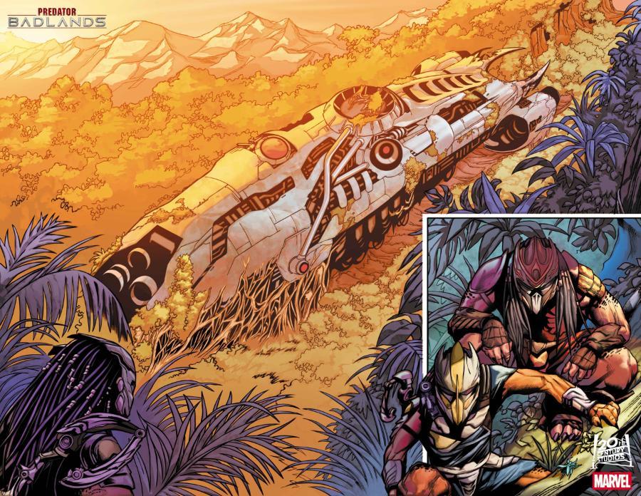 “Predator: Badlands,” the thrilling new entry in the “Predator” film franchise, arrives in theaters on November 7. That same week, Marvel Comics will publish PREDATOR: BADLANDS #1, a tie-in comic by writer Ethan Sacks, known for his stellar work on Marvel’s Star Wars titles, and, in his Marvel Comics debut, artist Elvin Ching, a promising recent participant of Marvel’s Art Atelier program. Serving as the official prelude to the highly anticipated film, the one-shot is being produced in close collaboration with director Dan Trachtenberg, who will also write a foreword for the issue. Today, fans can check out never-before-seen interior artwork as well as all three of the issue’s covers.