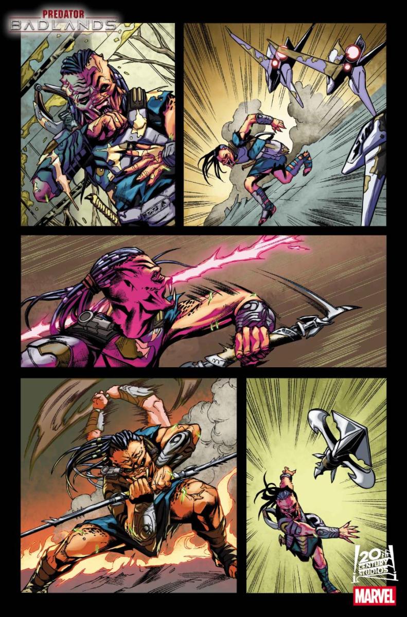 “Badlands is the first Predator movie to draw inspiration so heavily from the comic books. So it’s with great delight that you and I now get to look at splash pages, from the minds of Ethan and Elvin, of a formative adventure for our characters that serves as a perfect companion to the film,” Trachtenberg raves. “Dek kicking ass in his very own comic book is a dream come true.”