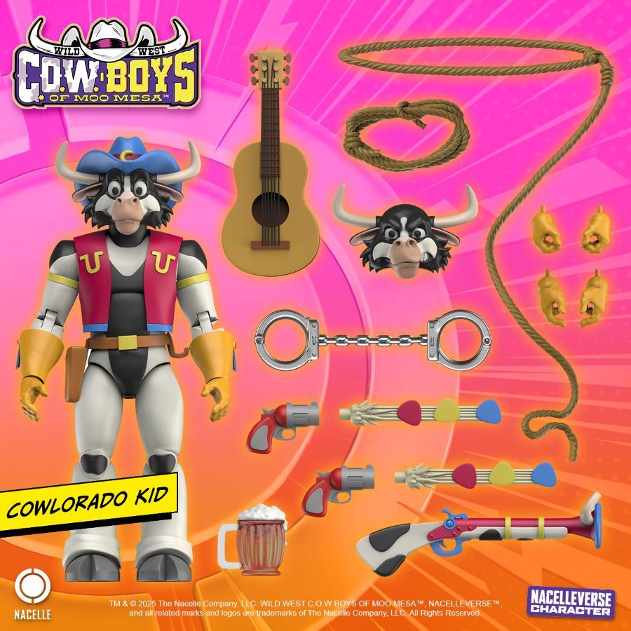 | WHAT: | The Nacelle Company, a leader in the pop-culture space and creators behind the growing NacelleVerse, delivered exciting news for fans of Wild West C.O.W.-Boys of Moo Mesa during its How The Toys That Made Us Launched a Toy Company panel at New York Comic Con 2025.The panel confirmed that Wave Two of the Wild West C.O.W.-Boys of Moo Mesa action figure line is officially in development, with the first look at digital renders for Cowlorado Kid (MSRP: $34.99) and Dakota Dude (MSRP: $34.99). These newly unveiled figures complete the iconic heroic trio alongside Marshal Moo Montana, who debuted in Wave One. Both characters are prominently featured in the Oni Comics published titles and as leads in the upcoming animated series revival by Nacelle. The Wave Two figures continue the premium design approach established in Wave One, featuring multiple accessories, alternate heads, extra hands, and collector-grade articulation that allow for dynamic posing and storytelling display. Wave One marked the Moo Mesa’s franchise’s long-awaited return to toy shelves, and during the panel it was announced that figures have officially shipped and are available now at Nacellestore.com and through select retail partners worldwide. The release was met with enthusiastic fan response, celebrating both the quality of the figure and the upcoming revival of the cult-classic animated series. Nacelle continues to expand its NacelleVerse with deep cuts and fan-favorite franchises like Moo Mesa’s with additional reveals and updates are expected in the coming months as the Moo Mesa line continues to grow. |