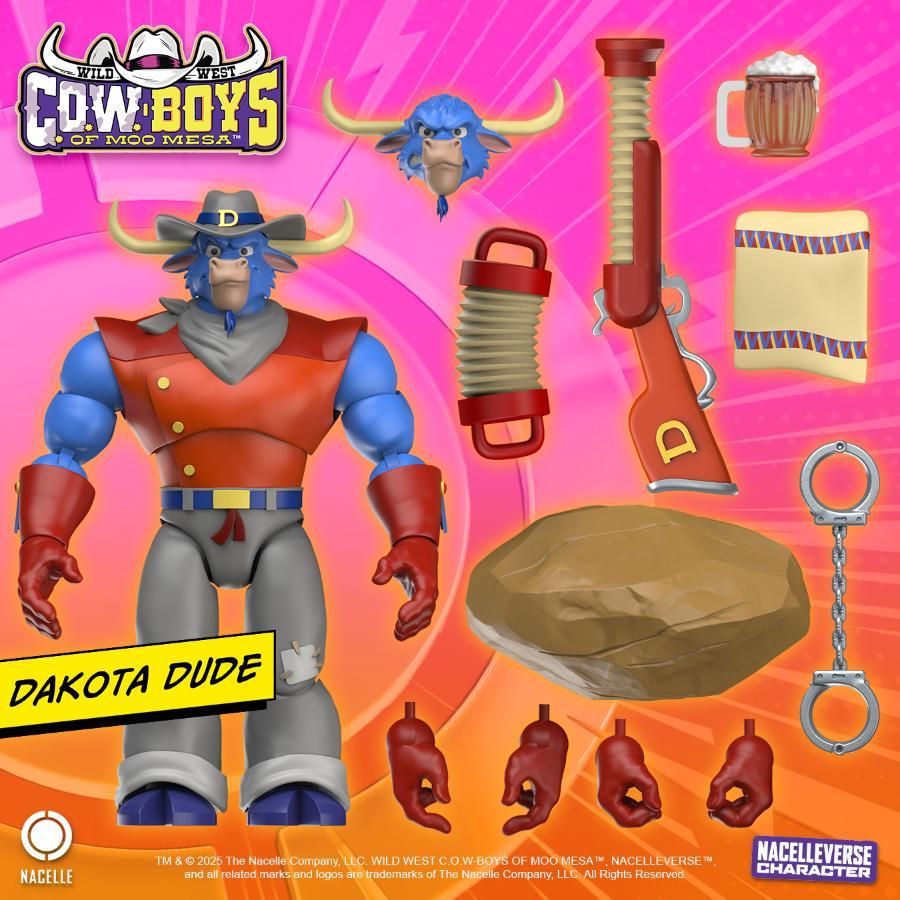 New is coming in hot off the floor of New York Comic Con. The Nacelle Company, a leader in the pop culture and collectibles space and the creative force behind the growing NacelleVerse, delivered major news for fans during their How The Toys That Made Us Launched a Toy Company panel at New York Comic Con 2025. The company confirmed that Wave Two of the Wild West C.O.W.-Boys of Moo Mesa action figure line is officially in development, unveiling the first digital renders for Cowlorado Kid and Dakota Dude (each MSRP: $34.99). These two new figures complete the beloved heroic trio alongside Marshal Moo Montana, who debuted in Wave One. Both characters will appear prominently in Oni Comics’ Moo Mesa titles and the upcoming animated series revival by Nacelle. Continuing the premium craftsmanship of Wave One, each figure features multiple accessories, alternate heads and hands, and collector-grade articulation for dynamic posing and storytelling display.