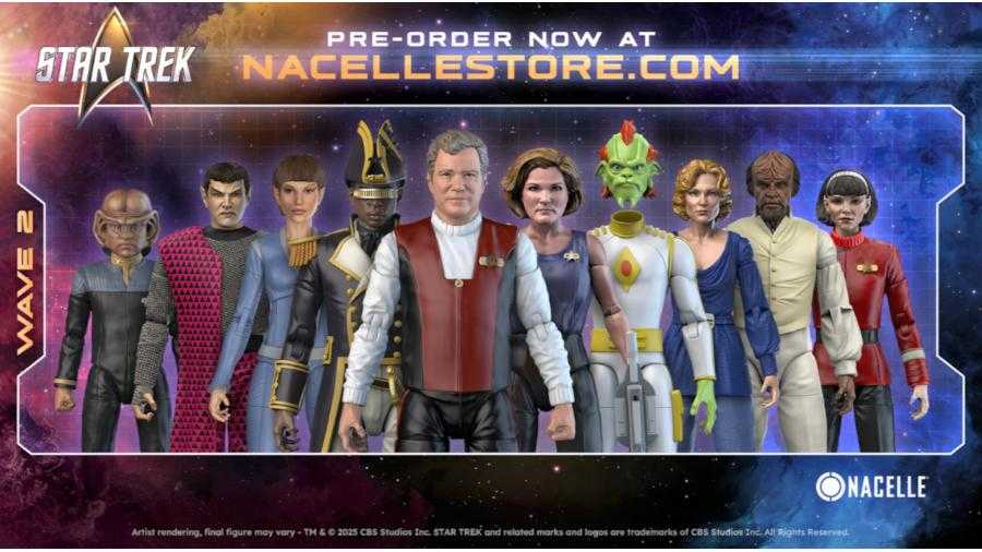 The Nacelle Company, the pop culture powerhouse behind reimagined classic pop culture franchises, officially launched pre-sales for Wave Two of its acclaimed Star Trek™ 1/10 scale action figure line during a panel presentation at New York Comic Con. Previously announced at WonderCon 2025, Wave Two features ten fan-favorite characters including James T. Kirk (Generations), Kathryn Janeway (“Year of Hell” Edition), Nog (“Favor the Bold” Edition), T’Pol, Valeris, Romulan Commander, Carol Marcus, Bem, Worf (Generations Sailor Edition), and Geordi La Forge (Generations Sailor Edition).