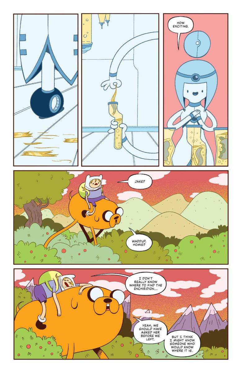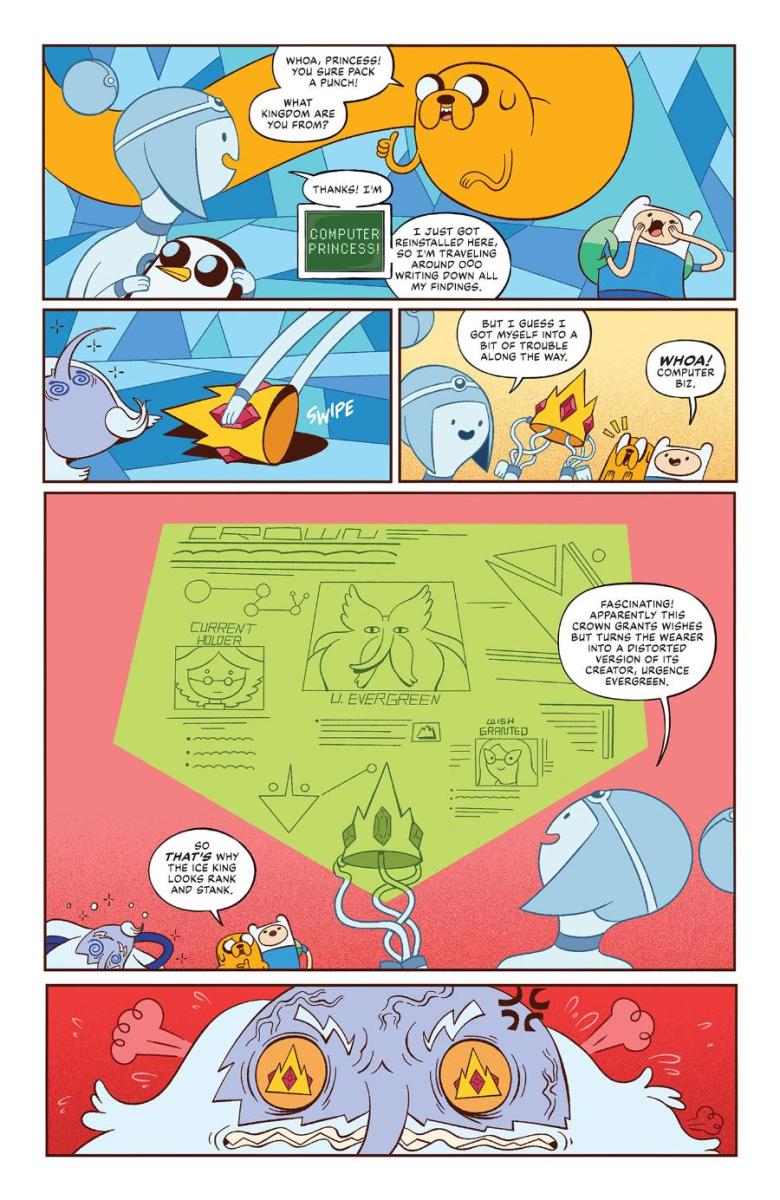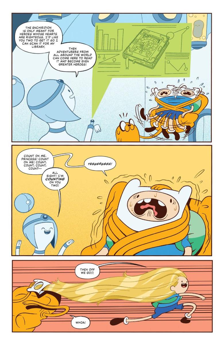 When Finn and Jake save the newly installed Computer Princess from the clutches of the evil Ice King—he just wants a bride, OK, is that too much to ask?!—the two escort her back to the Computer Kingdom, where she gives the Best of Buds a new quest: find the powerful guide for heroes, the Enchiridion, and bring it back to her so she can scan it for her digital archive! But where are they going to find it? And how?!