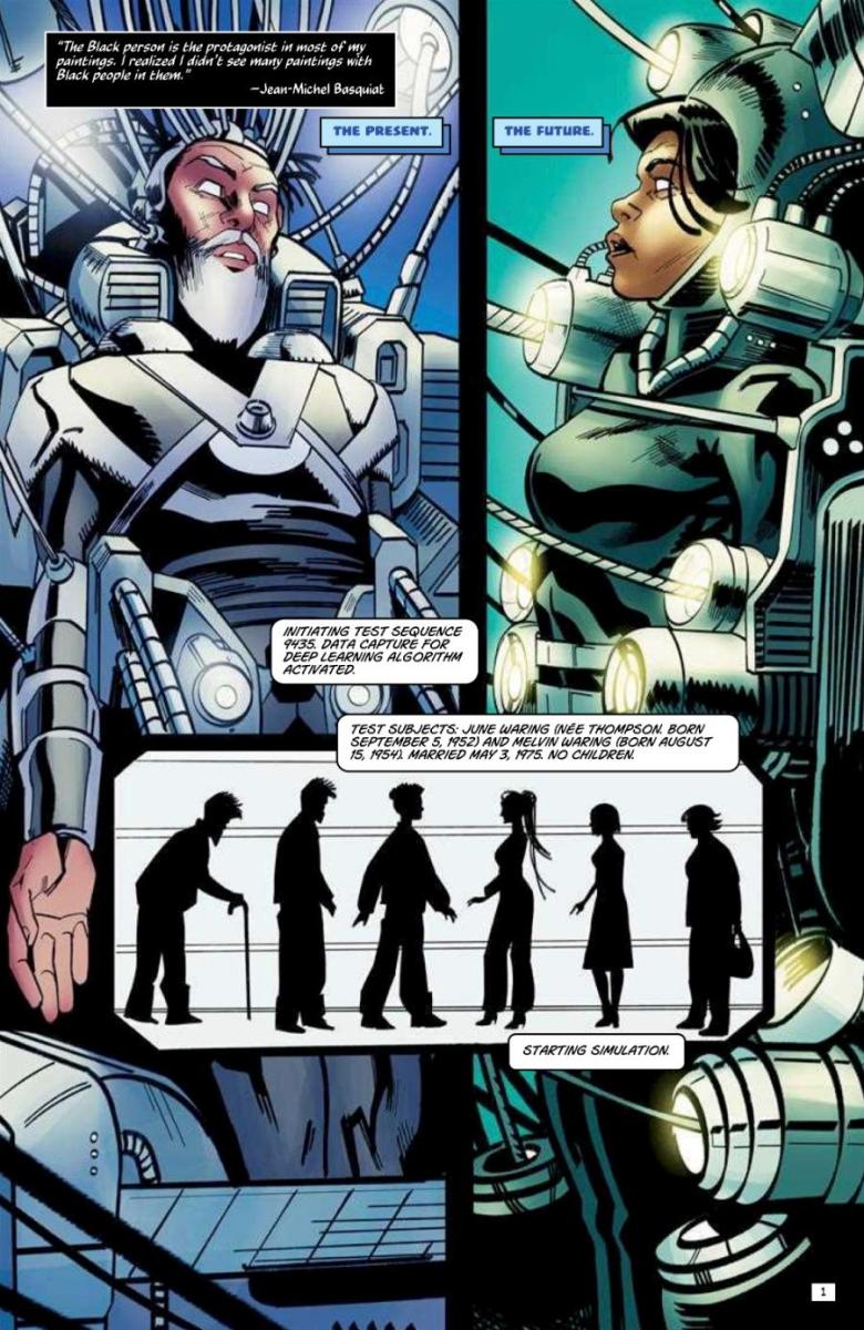 Penultimate issue! Aided by his “ancestors” in Black history, Melvin has finally found his wife June. But even with Melvin’s mysterious power, can they break out of the corporation’s futuristic headquarters?