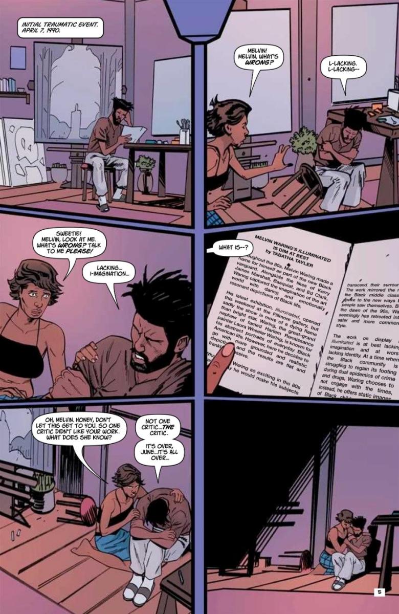 On November 12, acclaimed Syracuse-based comic book publisher AHOY Comics will publish ANCESTRAL RECALL #4, the fourth issue of the historical science fiction comedy from writer Jordan Clark (Aquaman, Star Wars Adventures) and artist Atagun İlhan (Poison Ivy, Milestone Universe: The Shadow Cabinet) about an eccentric abstract painter who taps into the literal power of Black History to solve a series of supernatural disappearances with the help of his wife and preteen neighbor. The gripping new saga from the two Milestone Initiative members uses science fiction and comedy to explore the importance of Black history, the connections between the past and present, and learning to push through difficult life changes.