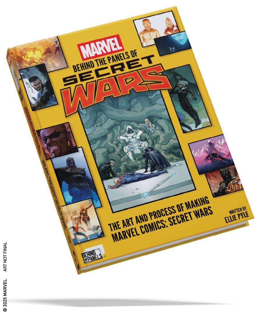 Written by Ellie Pyle, Marvel: Behind The Panels Of Secret Wars takes a deep dive into the secrets that shaped the groundbreaking 2015 crossover event, one of the most important stories in Marvel history, compiling tales from creative summits and planning sessions, wild pitches that never saw print, first looks at new character designs, and much more. Measuring 11.7”x16.5” and showcasing hundreds of gorgeous illustrations, this 300-page deluxe hardcover features meaningful insights from creators including Jonathan Hickman and Esad Ribić (Secret Wars), Jason Aaron (Thors and Weirdworld), Keiran Gillen (Siege and 1602: Witch Hunter Angela), Gerry Duggan (Infinity Gauntlet, 1782, and Mrs. Deadpool and the Howling Commandos), and Tom Brevoort (Vice President and Executive Editor, Marvel Comics).