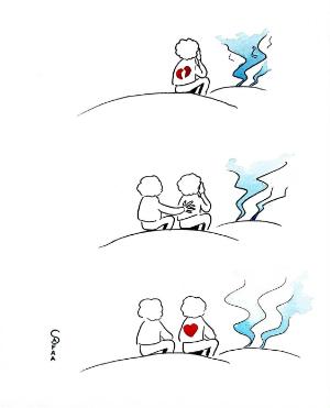 Mohammad: Safaa Awad, a Palestinian artist from Gaza, shares her illustrated testimony in several newspapers, most notably Qatar’s Al-Araby Al-Jadeed. Like countless Palestinians in Gaza, she was forcibly displaced from her home, reduced to rubble by Israeli bombardment. Moving from shelter to shelter, she found refuge in her artwork from the devastating airstrikes and the ongoing genocide against Palestinians.