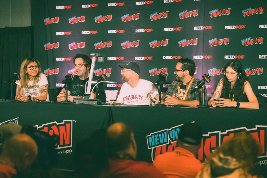 The Exquisite Corpses: The Game website was announced during a Live Play panel at this year’s New York Comic Con that was moderated by Hector Navarro and featured Tynion and Walsh as panelists & players, fighting against Menard and Production Manager DeAna Avila. Ultimately Tynion took the win at the NYCC Live Play with a close call.