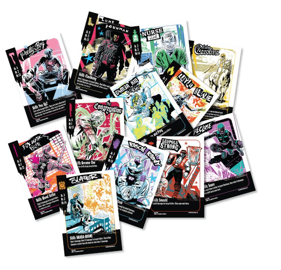 “I have had so much fun developing Exquisite Corpses: The Game,” said Walsh. “My intention was to build something that integrated well into the comics world, but could also stand on its own as a fun social strategy game. I’ve had a blast killing all my friends over the past couple of years as the game came into focus, and I can’t wait for the fans to be able to roleplay as some of their favourite killers from the comic book.”