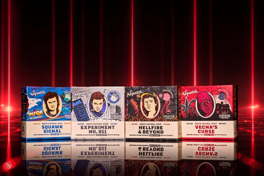 Dr. Squatch’s Stranger Things collection features four soaps and two deodorants that pay homage to Hawkins’ most iconic forces and fan-favorite elements: Vecna’s Curse, Hellfire & Beyond, Squawk Signal, and Experiment No. 011. Shop the collection here.