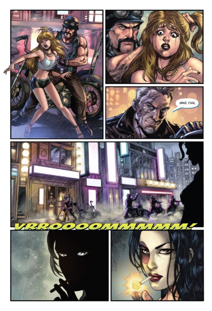 “Fred’s colors are just incredible, and aside from adding more blues, oranges, reds, greens and yellows to the neon on page 1… done.” Stated Tucci. “I just love what both are doing and am also stoked by the small nuances Mindy adds to the lettering, like leaving out the black border around the word balloons and the colored “drop shadow” unique to each character’s dialogue. Check them out!”