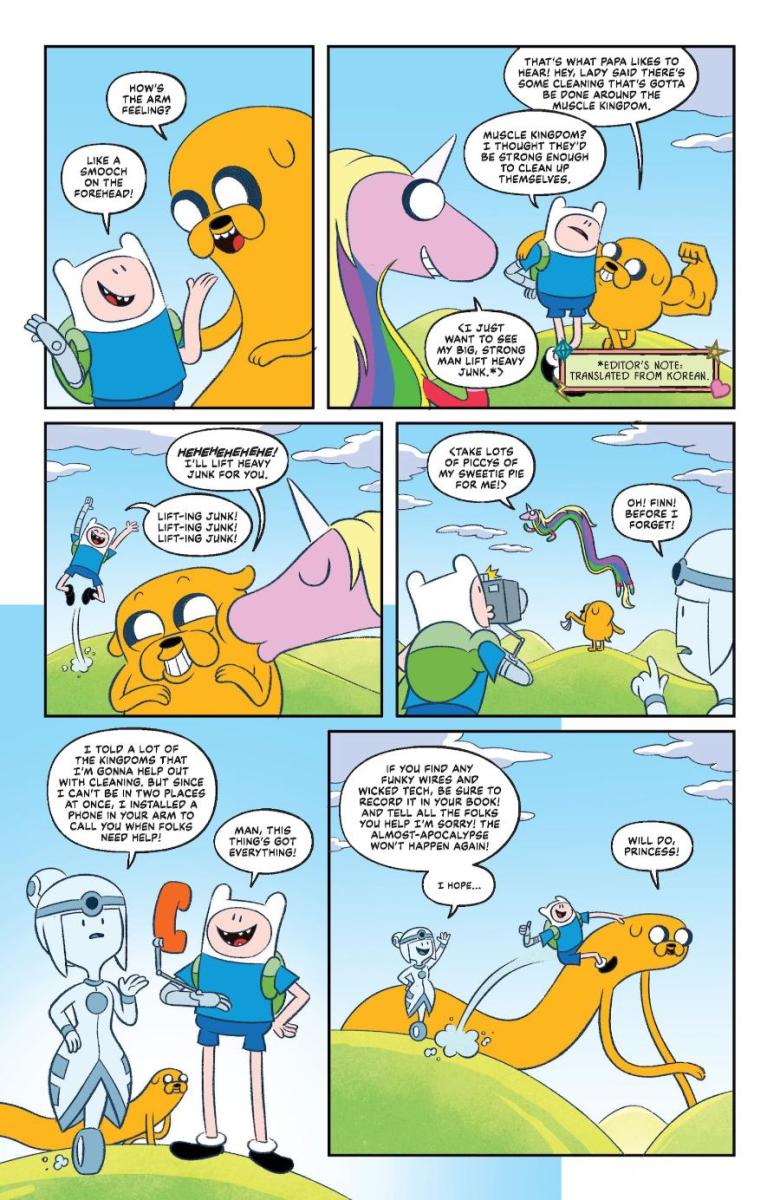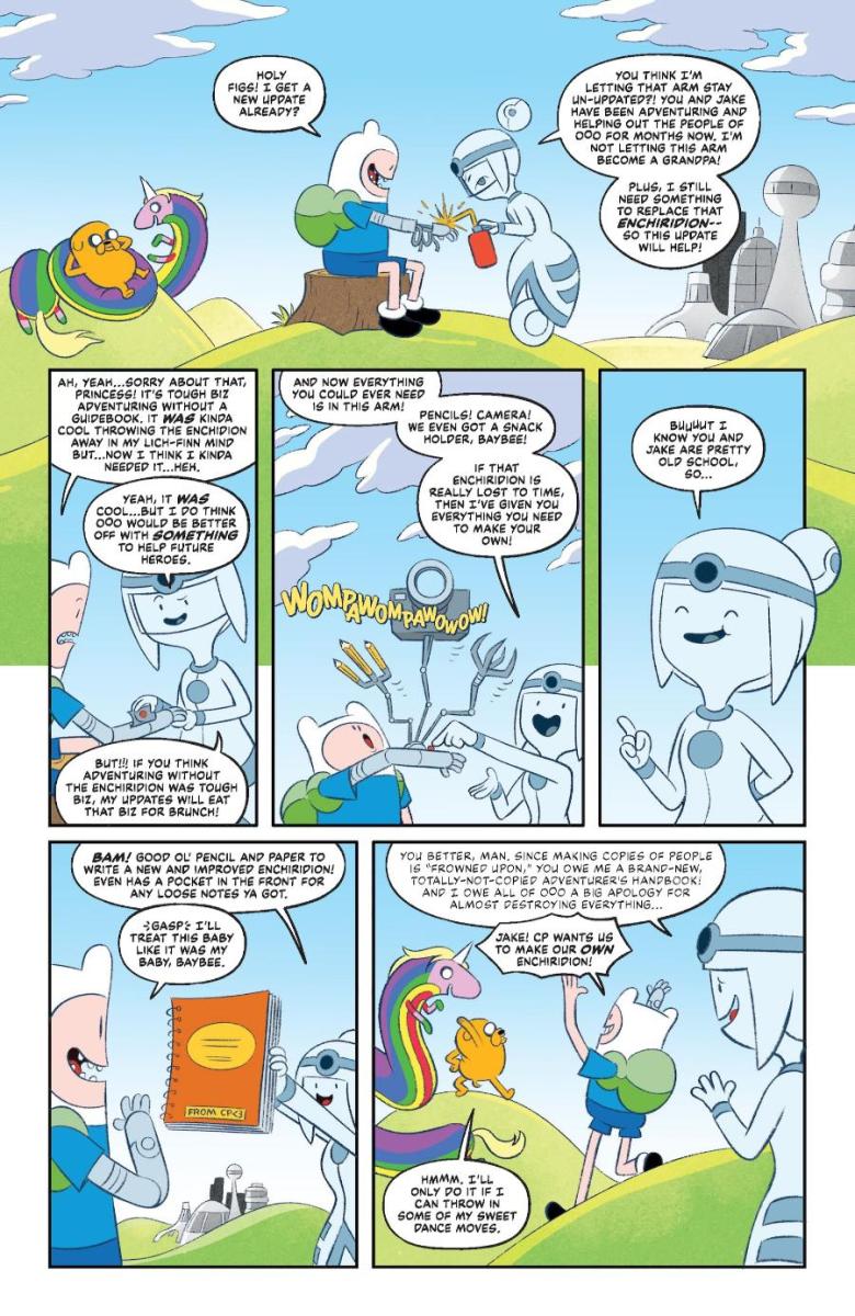 “Coming off of Finn and Jake’s mishaps in Best of Buds and Friends To The End, Finn and Jake try to right their wrongs of almost destroying all of Ooo by becoming the cleanup crew with Finn’s new robot arm,” says writer Nick Winn. “Unfortunately, Robot Finn is still running around somewhere, and now he’s mucking everything up for all the citizens! This new arc is going to feature more people of Ooo and dive deeper into their homes and keepsakes as we hunt down Robot Finn in these four wacky issues. I’m curious what you all think the green mold sticking out of Robot Finn’s body is? Guess you’ll have to read and find out!”