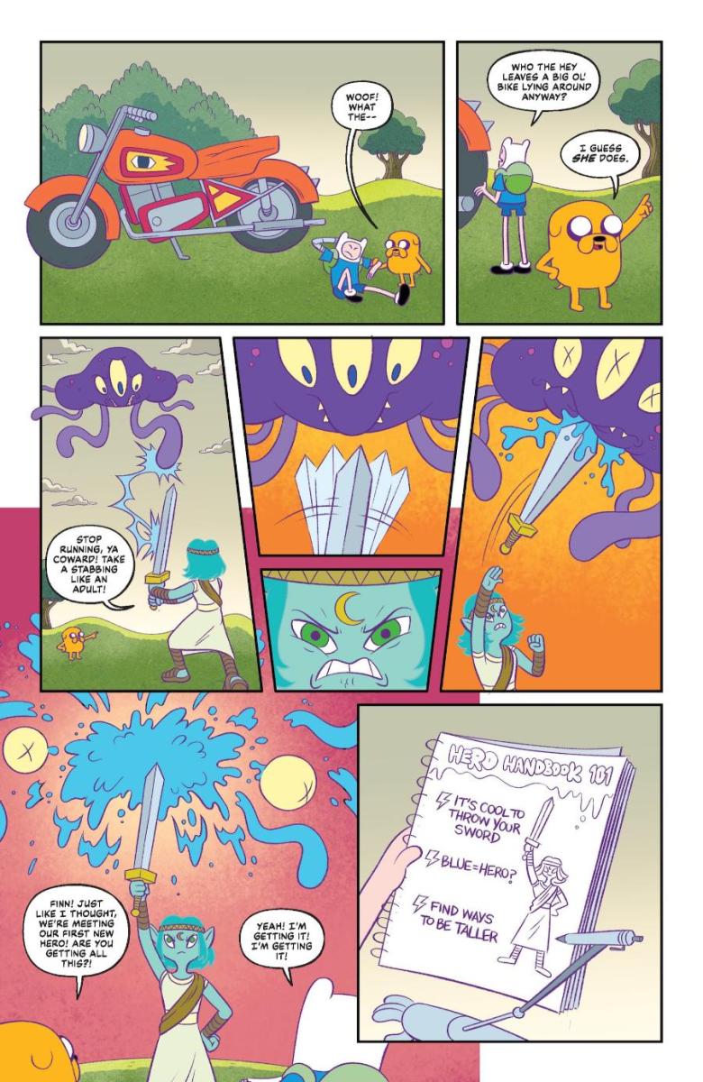 HEY, IT’S AN ALL-NEW JUMPING-ON POINT! “HANDBOOK HEROES!” STARTS HERE! Oni Press—the multiple Eisner- and Harvey Award–winning publisher of groundbreaking comics and graphic novels since 1997—and Warner Bros. Discovery Global Consumer Products (WBDGCP) are proud to present your first look inside ADVENTURE TIME #9 – the must-read first chapter of a brand-new, kick-butt quest packed with rambunctious robotic doppelgängers, and plenty of heroic hi-jinks from writer Nick Winn (Bloody Mary) and artist Austin Baechle (Sesame Street)! Get ready to join Finn and Jake as they set out to create the ultimate handbook to heroics when “Handbook Heroes” kicks off on January 21st!