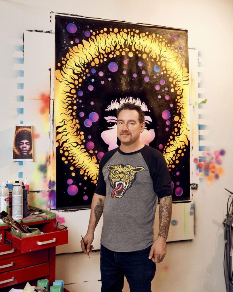 Born in Ottawa, Canada, in 1974, Donny Gillies is a highly influential artist in the punk, rock ’n’ roll and heavy metal scenes. He is known for his art across various mediums, such as skate decks, pinball machines, and album covers. His artistic style, kustom kulture, was born out of the hot rod movement, blending monster themes with heavily modified automobiles and motorcycles. Early in his career, he worked with Metallica on murals, merchandise, and pinball machines, creating the iconic character “Sparky.” Donny’s work with Metallica led him to a commission from Stern Pinball for an Aerosmith game, thanks to his reputation and Metallica’s recommendation. His recognizable hand-drawn designs have promoted kustom kulture to a wider audience than ever before.