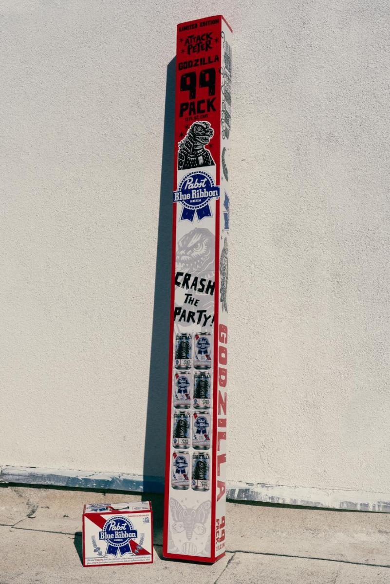“This collaboration represents the intersection of pop culture, art, and lifestyle. Seeing the Godzilla universe come to life across an entire 99 Pack is something we’re incredibly proud of, and it speaks to the brand’s continued evolution,” said Kristin Parcell, General Manager of Toho International. “Working with Pabst Blue Ribbon and ATTACK PETER gave us an opportunity to reimagine how fans engage with Godzilla beyond the screen and we’re excited for fans to experience this original artwork in such a unique way.