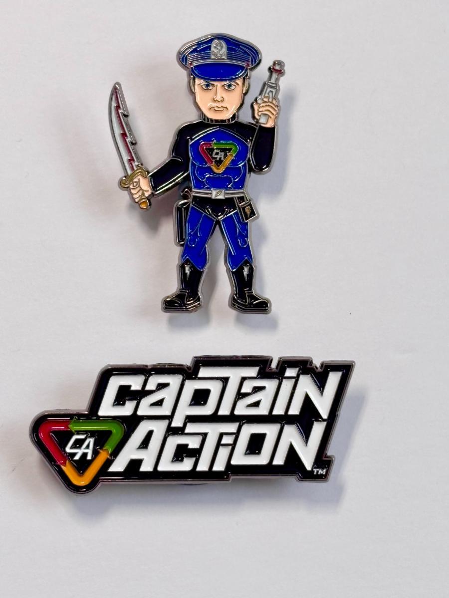 The first Wave of pins, debuting in February 2026, will include figures of Captain Action, Dr. Evil, Lady Action©, Prof. Fangs©, Major Action© and Action Boy©. This initial collection will also include the classic Captain Action insignia and logo.   Convention exclusives are also being planned for ITHACON and Comic-Con International (i.e., San Diego Comic-Con).