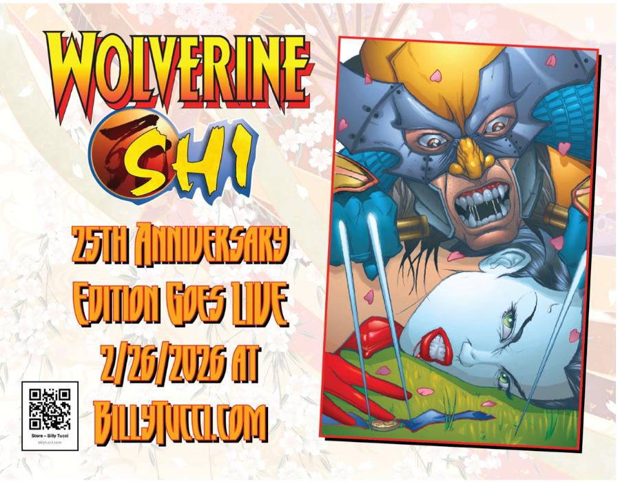 Sharpen your claws! Join hosts Billy and Deb Tucci and special guest, BEAU SMITH for a furious Thursday Night Live and the launch of the WOLVERINE/SHI: DARK NIGHT OF JUDGEMENT #1 25th ANNIVERSARY EDITION! Tonight, writer Beau Smith and artist Billy Tucci will showcase this very limited www.billytucci.com exclusive edition of the crossover that shook the comics’ industry! These exclusive include variant covers, numbered foil and metal editions that launch live at 7pm EST. The Tucci’s will also update fans on Shi: Gatecrasher’s finishing fulfillment and reveal their current Kickstarter, Ran: Revenge of the Warrior #1’s incredible colors by Fred Marinho!