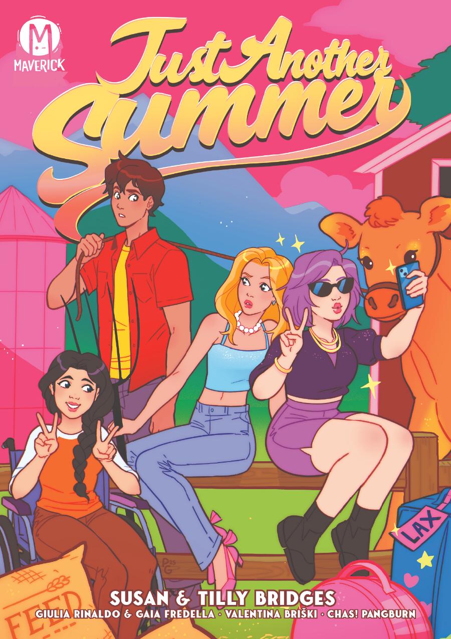 Mad Cave Studios’ YA imprint Maverick proudly announces JUST ANOTHER SUMMER, a queer and trans-friendly romantic comedy from writers Tilly Bridges and Susan Bridges (Star Trek Voyager: Homecoming, Monster High), featuring artwork by AoiG. (Lacrime di Cioccolata) and Giulia Rinaldo, with colors by Valentina Briski and lettering by Chas! Pangburn.
