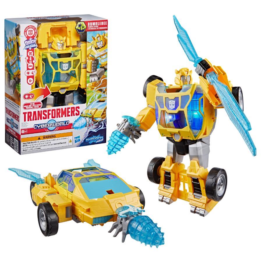 Power kids’ imaginations with the Energon Surge Cyber Changers figures! These 4-inch toys change from robot to alt mode that are simple enough for kids ages 6 and up. CYBERWORLD Energon Surge figures have translucent and glow-in-the-dark details that get “powered up” by the Energon Surge Bumblebee Power Spark toy (sold separately, subject to availability). Look for more CYBERWORLD toys to build out their world. Great stocking stuffers, Easter basket fillers, or small gifts for boys and girls.
