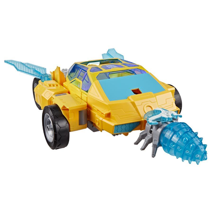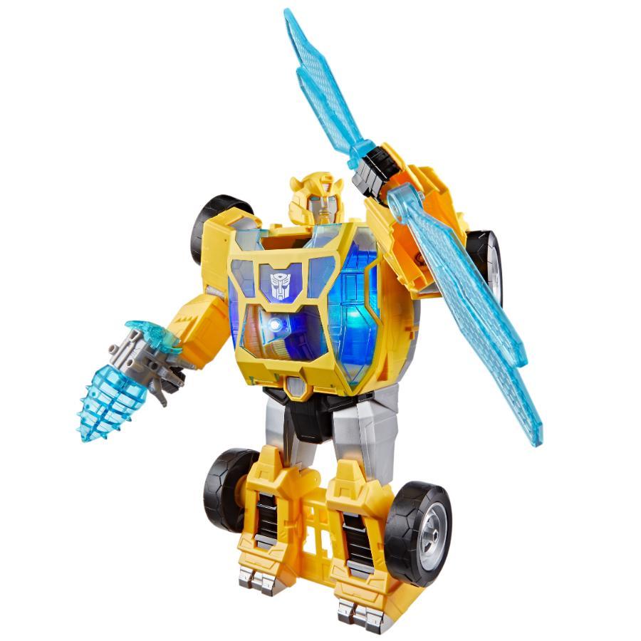 Power kids’ imaginations with the TRANSFORMERS CYBERWORLD Energon Surge Bumblebee Power Spark toy! This giant 11-inch robot action figure changes to a car toy in 4 quick, simple steps. Bumblebee’s chest lights up with “Energon Surge” power; place included glow-in-the-dark mask or other Energon Surge figures and accessories (sold separately, subject to availability) inside to reveal glow-in-the-dark details. Press the button to hear exciting sounds and phrases and hold the button down to “overload” Bumblebee with Energon power and activate villain sound effects. Kids can lean into Bumblebee’s dark alter ego by turning his head to reveal a villainous expression. Interactive TRANSFORMERS Bumblebee figure comes with accessories that attach in both modes and can be combined into a bee drone. Requires 3x A76/LR44 batteries. Look for more TRANSFORMERS CYBERWORLD featuring favorite characters like Optimus Prime, Megatron, and more (each sold separately, subject to availability).