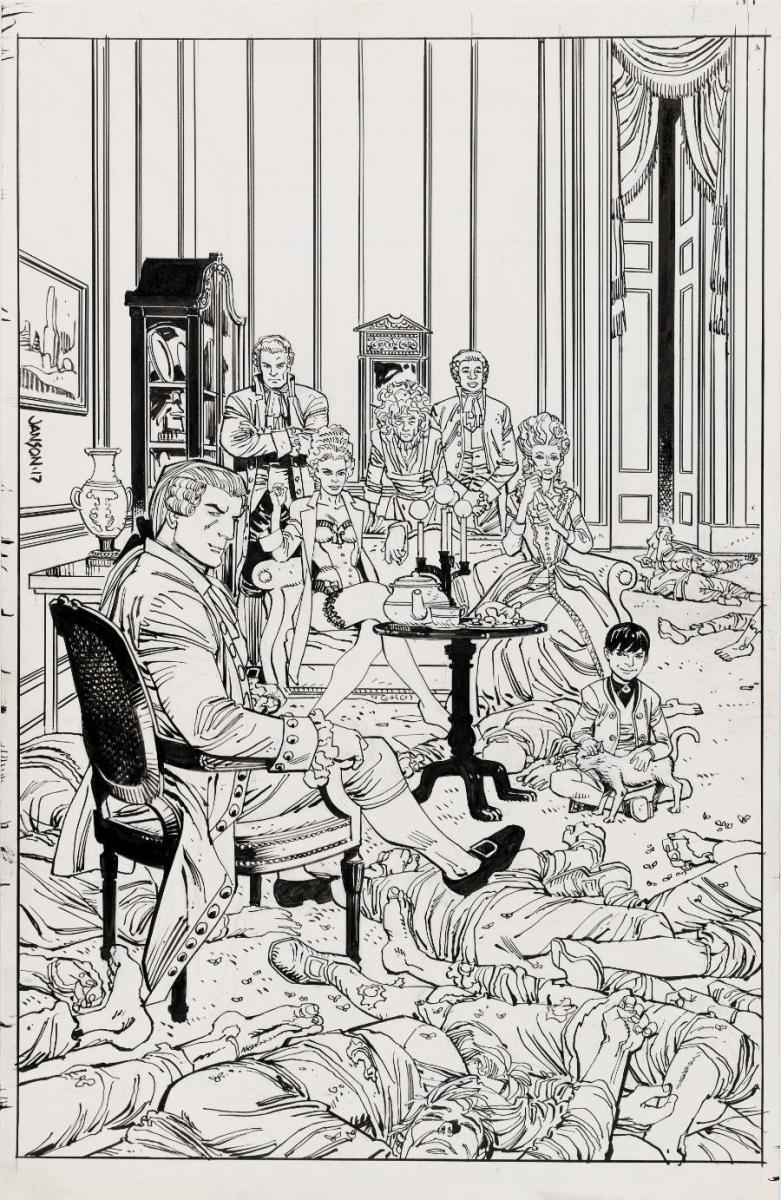 “Though his career encompasses a wide range of responsibilities, it was through inking that Janson first established both his livelihood and his artistic identity,” adds Labaune. “The goals of inking overlap directly with those of penciling, clarity, depth, rhythm, drama, and continuity are interwoven between the two disciplines.”