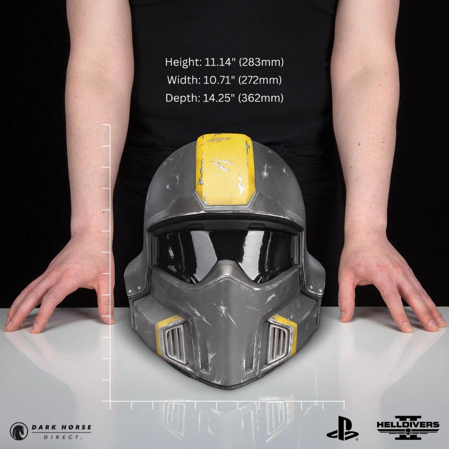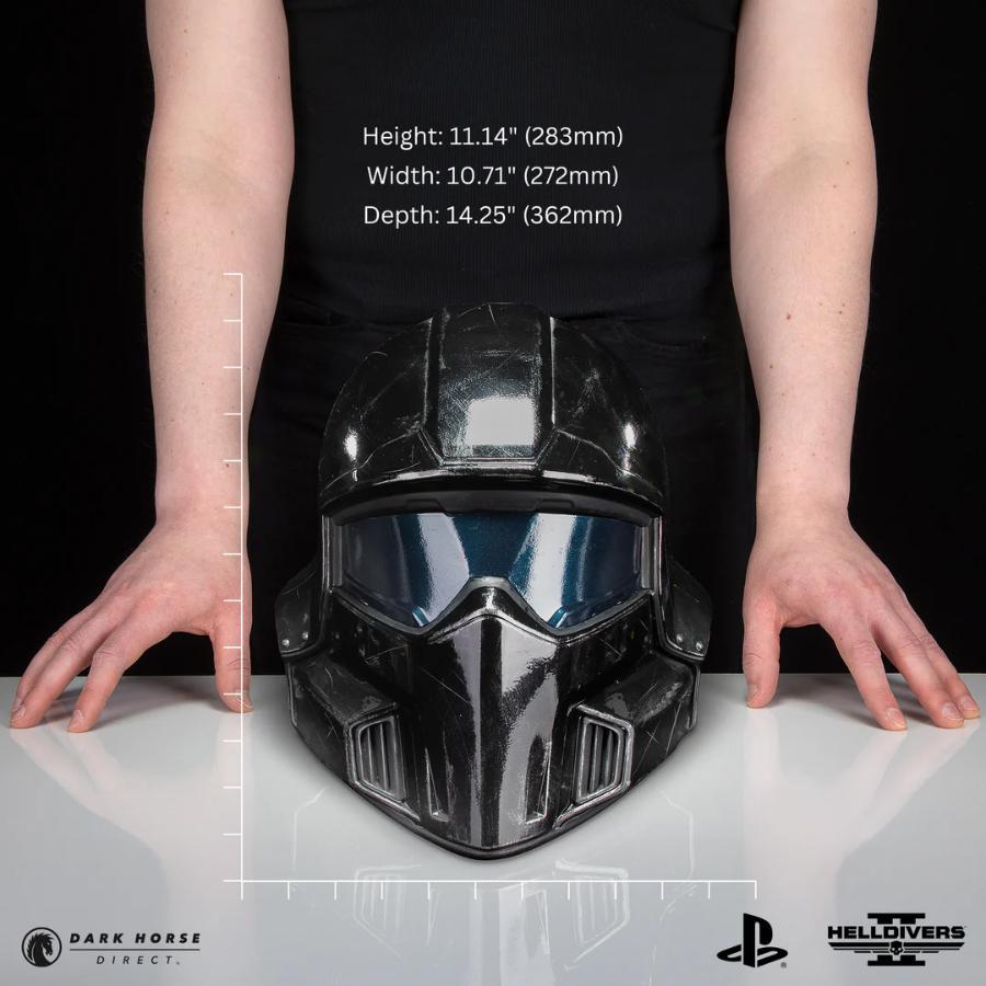 Dark Horse, Arrowhead Game Studios, and Sony present a set of three Helldivers 2 Helmet 1:1 Replicas featuring the signature B-01 Tactical, B-01 Tactical (Battle Damaged), and B-22 Model Citizen. Each helmet measures at 12” tall by 10.25” wide and 12.75” deep with interior padding and a tinted see-through visor, making these the perfect additions to any Helldivers 2 cosplay.
