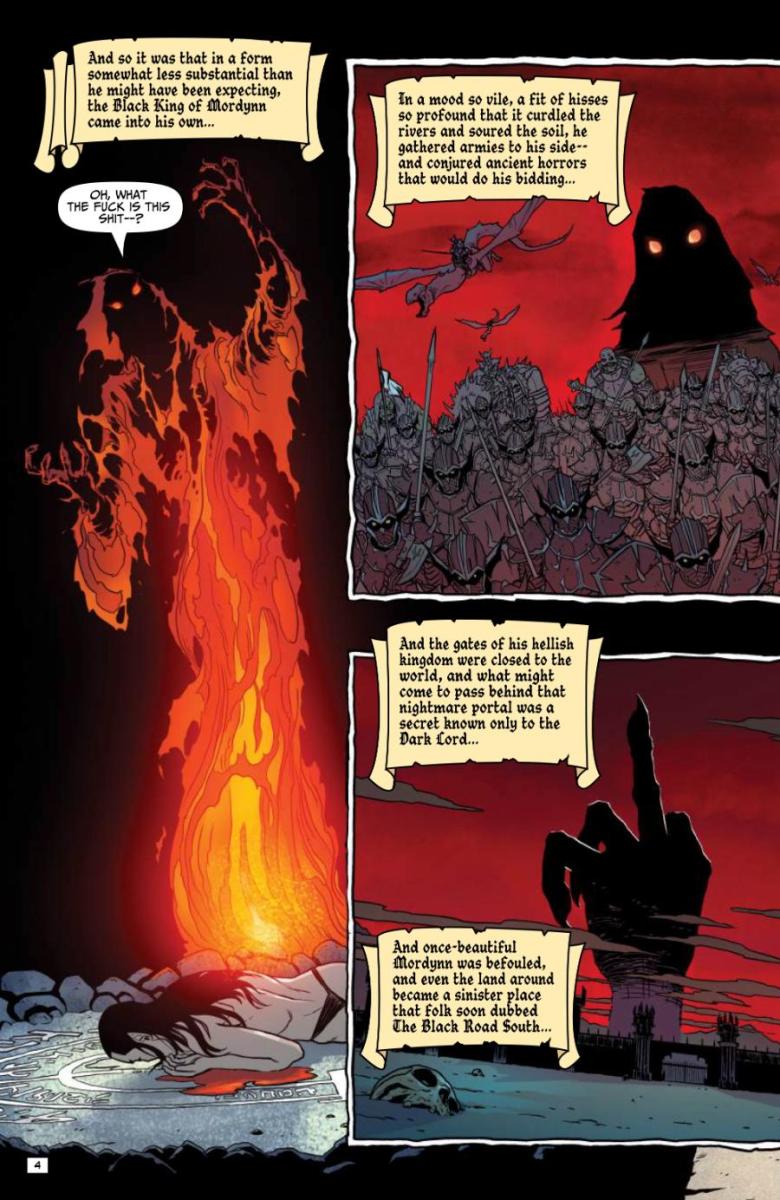On their quest down the demon-cursed Black Road South, Babs and Izzy face murderous creatures, a murderous hobbit who’s into bondage, and a couple of particularly murderous, impossible-not-to-mock examples of cosmetic surgery attached to a narcissistic swordswoman! Is all of this stress worth the treasure that might await at road’s end? Of course. It’s treasure!